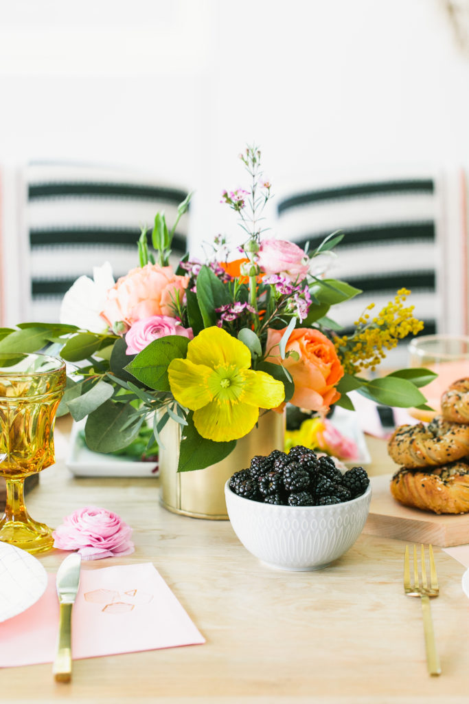 But seriously, how amazing is Kayla’s home you guys?! Love it, I’ll host a brunch here any time! It was made extra pretty with florals by Rekindle Creative, I love the bright Spring poppies that add a pop to the table.