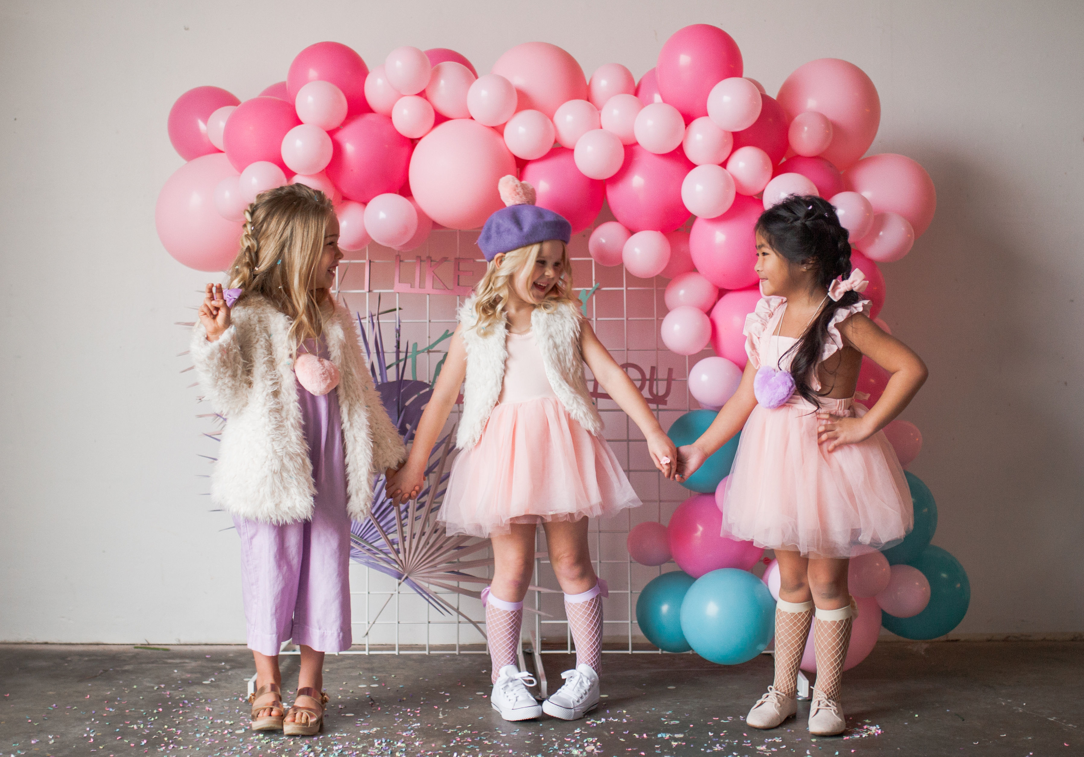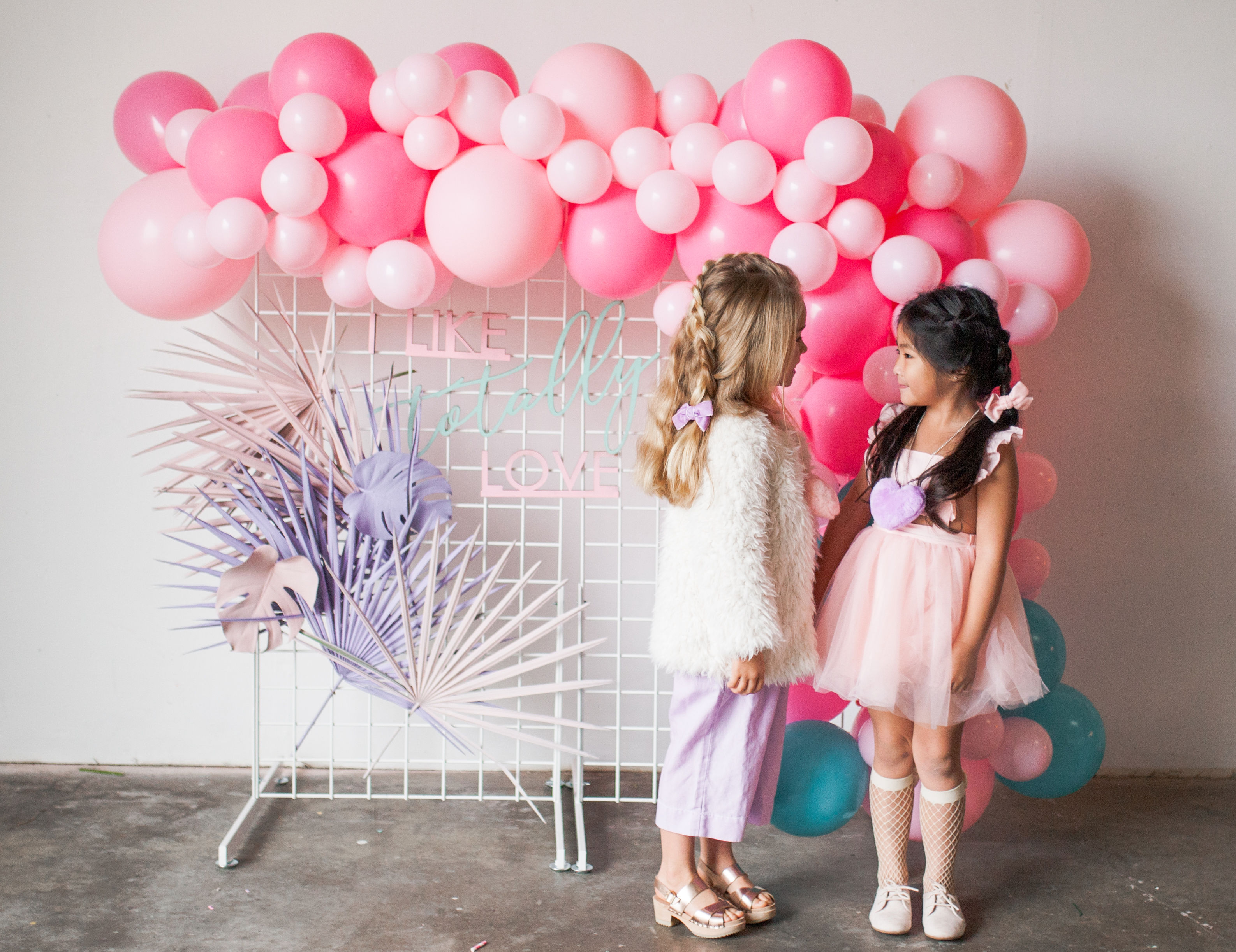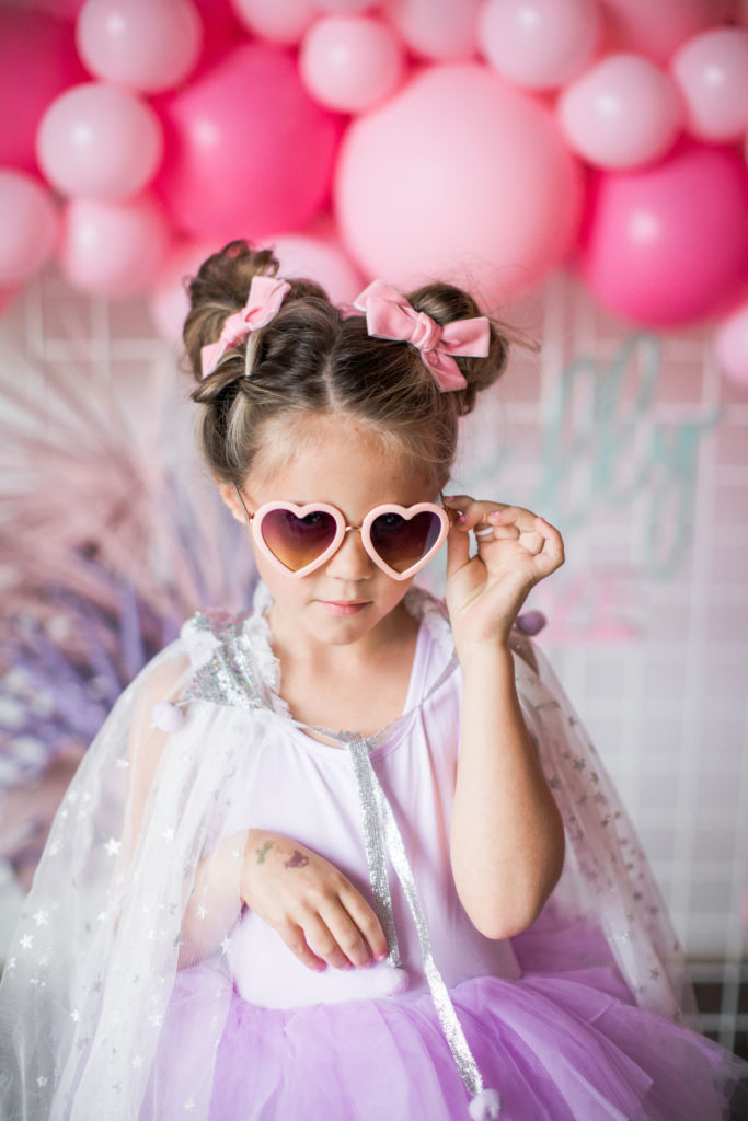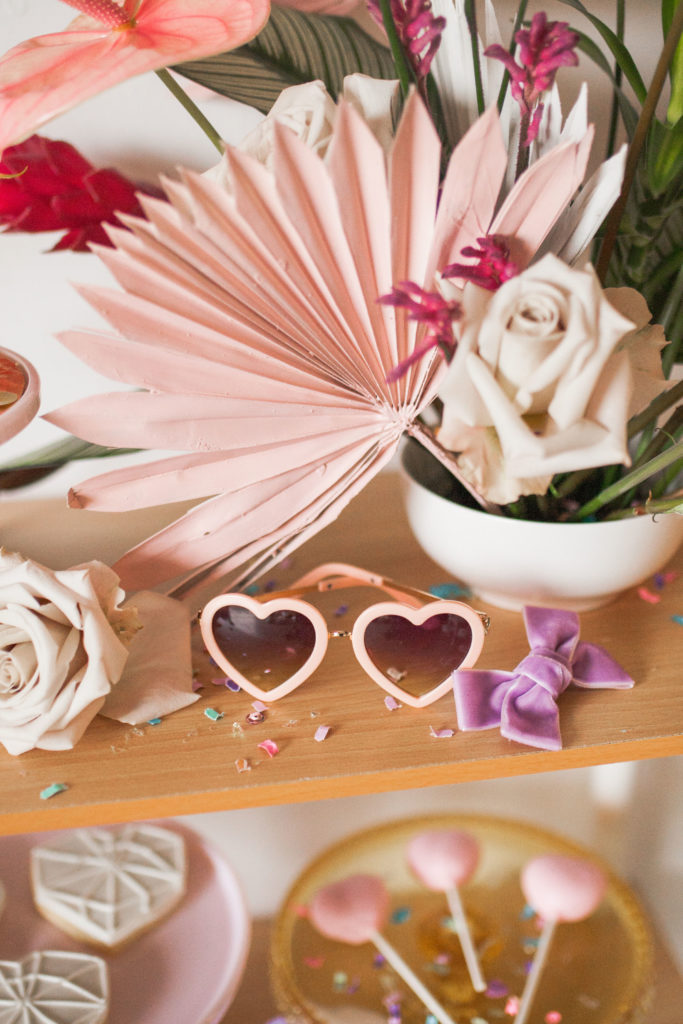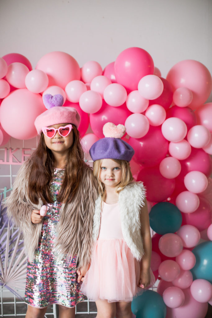 And how cute do these girls look?! Our friend Carissa at The Daydream Republic is always the best at styling the littles. She used all of her darling accessories paired with her own daughter’s wardrobe to get them all ready to party!! I think my favorite has to be the fishnet socks with hearts, but the heart sunnies are up there too!!