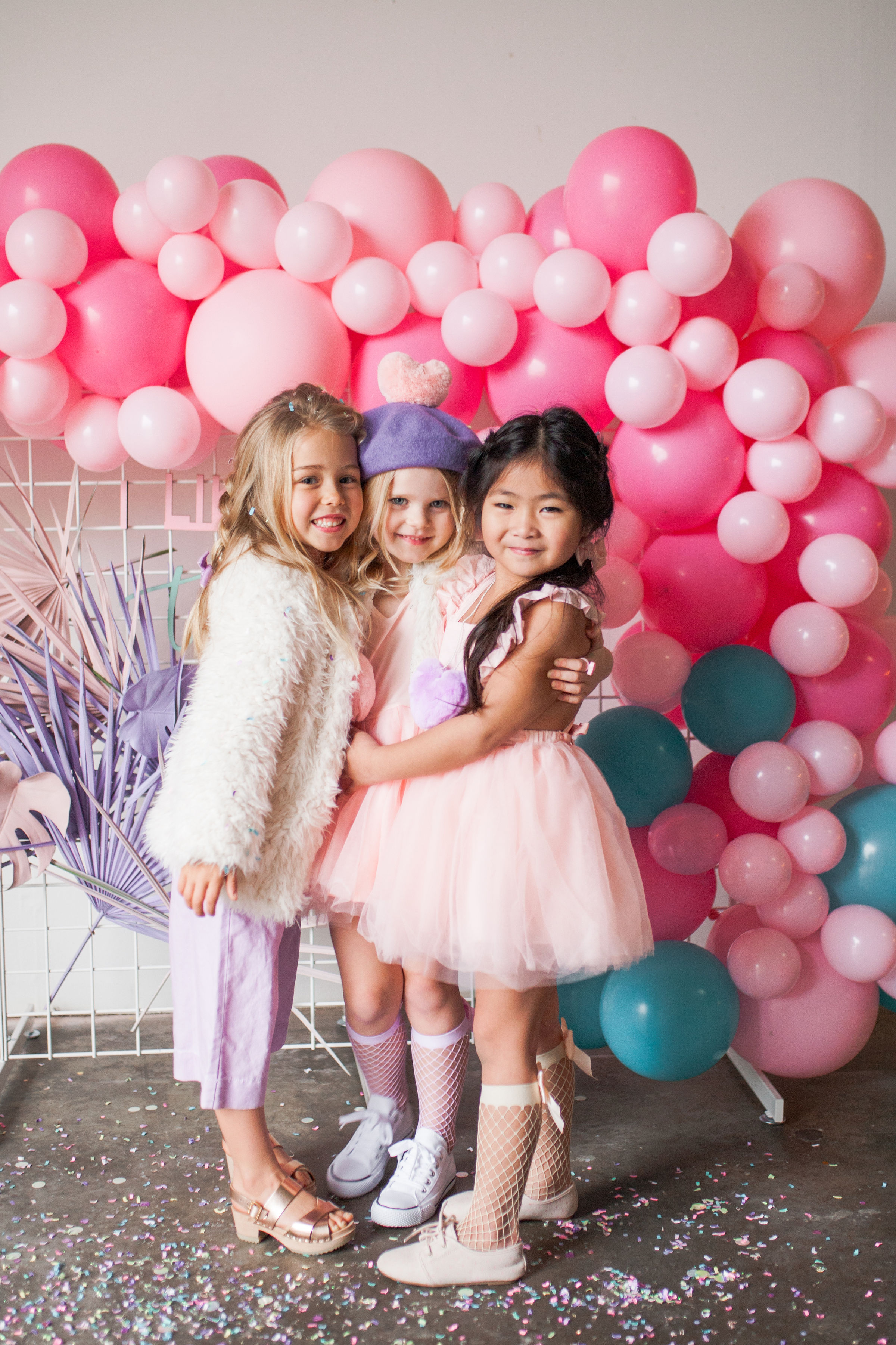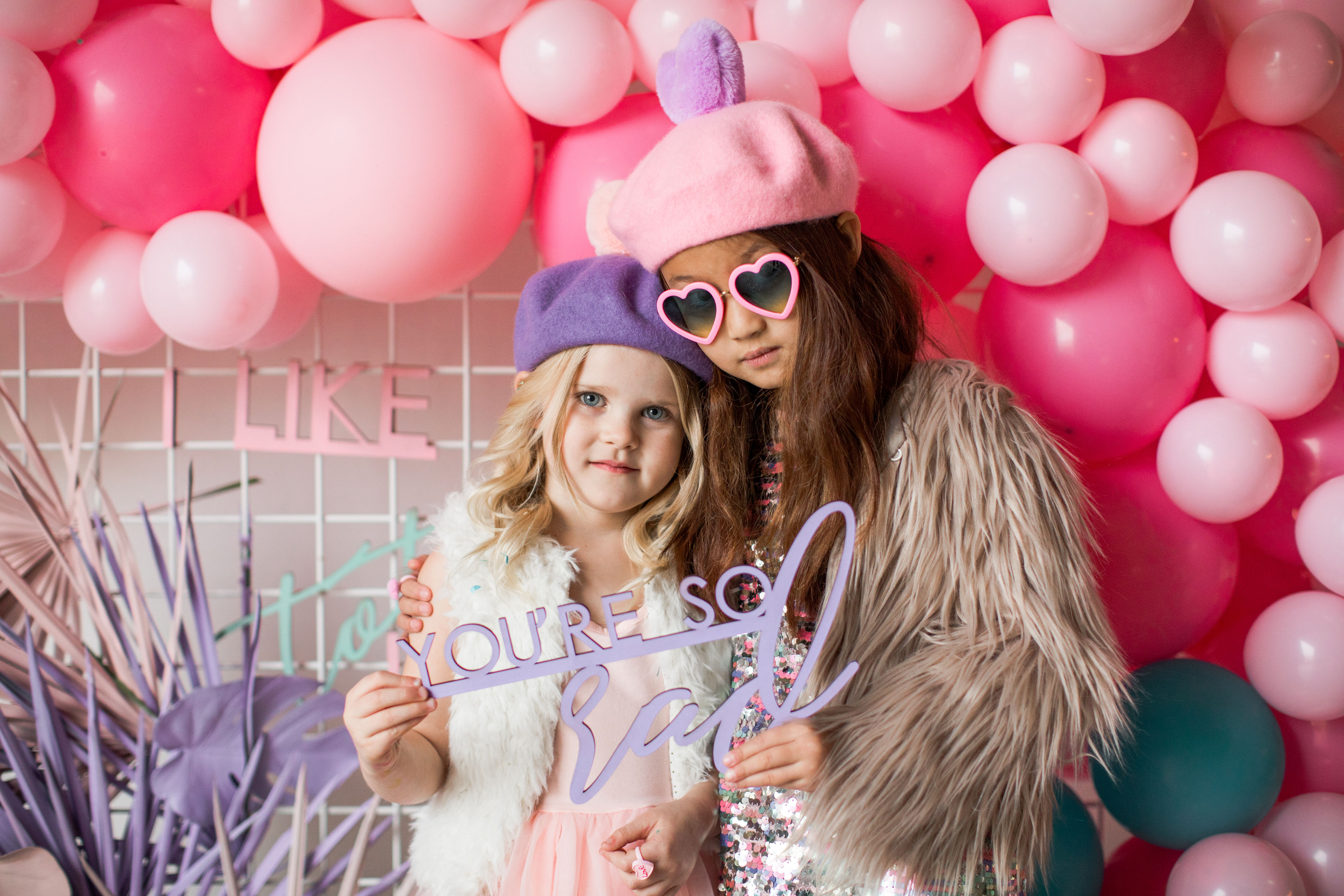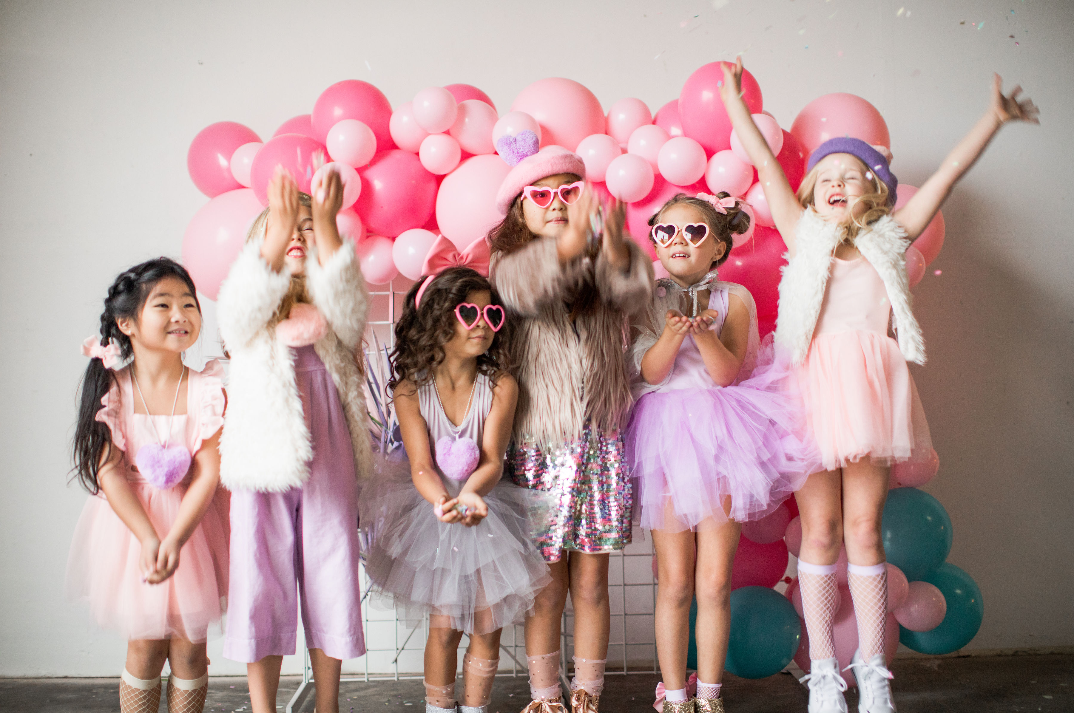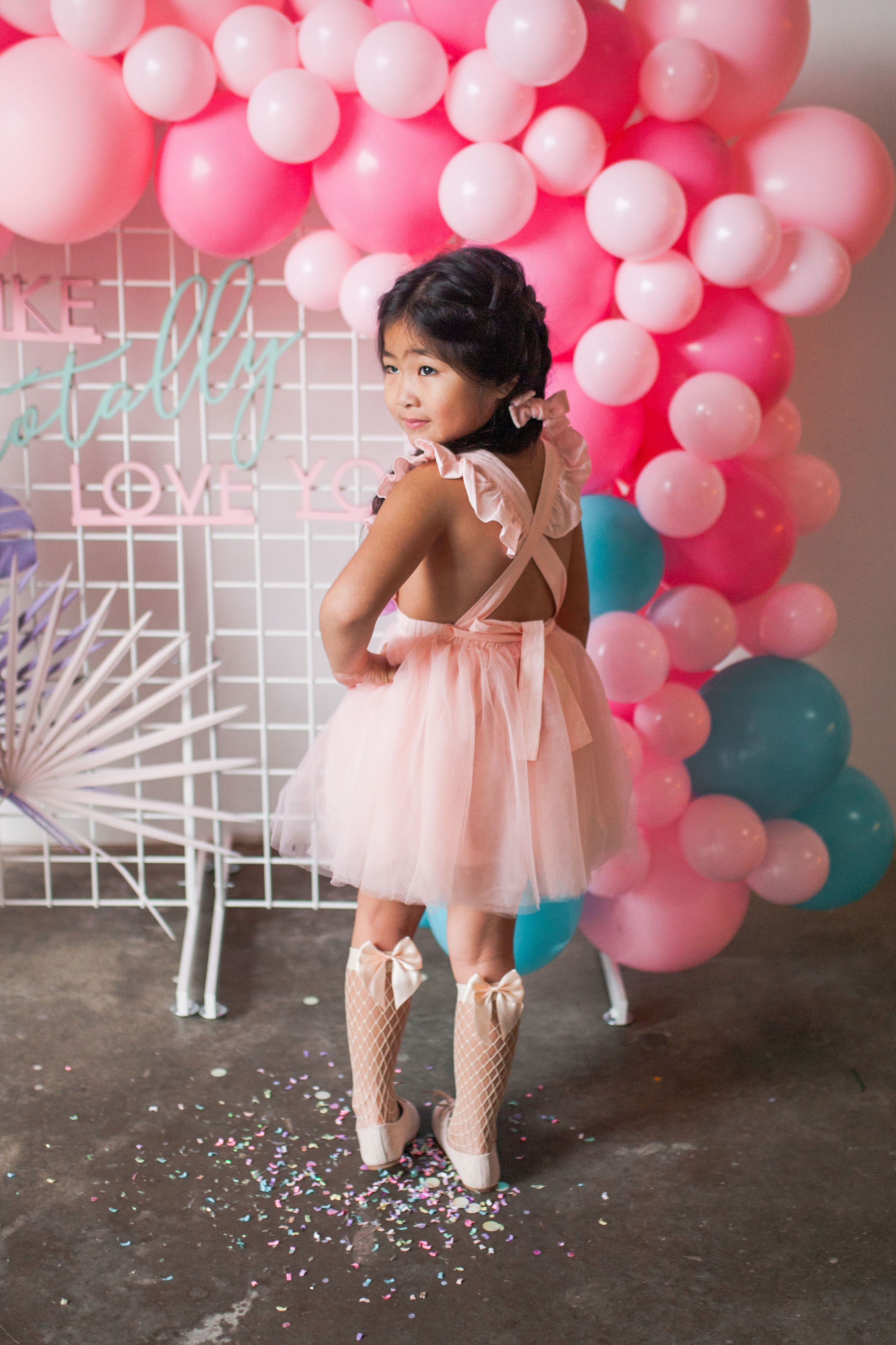 And how cute do these girls look?! Our friend Carissa at The Daydream Republic is always the best at styling the littles. She used all of her darling accessories paired with her own daughter’s wardrobe to get them all ready to party!! I think my favorite has to be the fishnet socks with hearts, but the heart sunnies are up there too!!