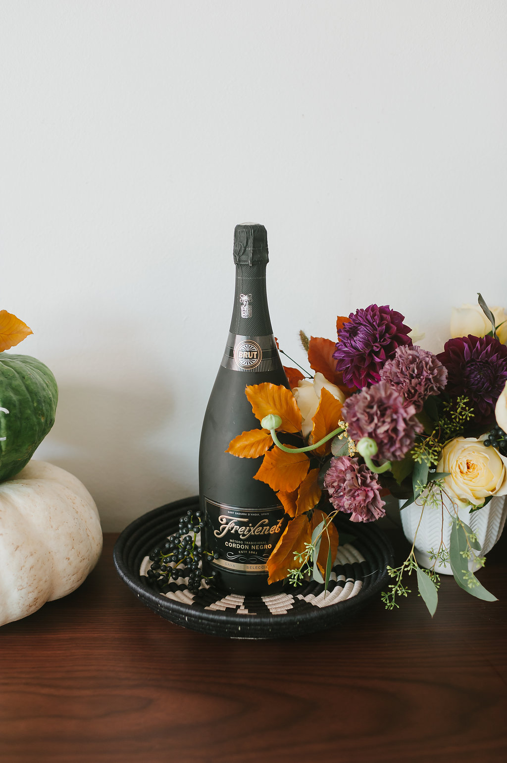I know Halloween is all about the black and orange, but I steered a little away from too much orange for this. Gotta do it the Beijos way of course! The gorgeous floral arrangement is by Olive & Blooms – more to come on that beauty later! But I love how she used such pretty Fall colors and foliage, plus a little peek of pampas grass. Definitely a showstopper!