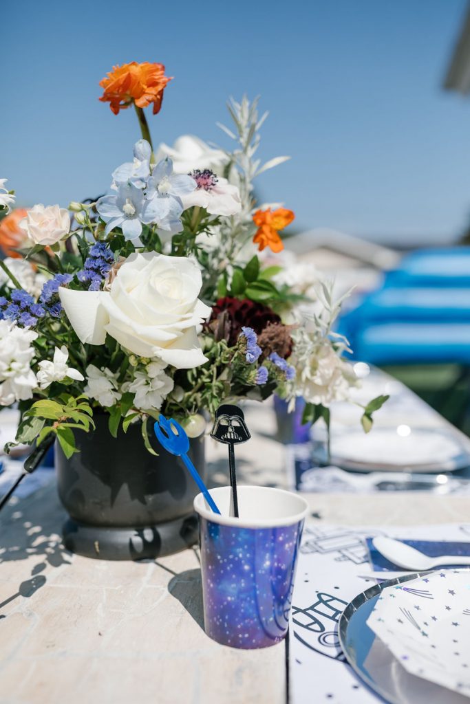 I had to sneak this one in before the end of the year! My cutie Cruz turned 5 in August and we threw him this big bash!! He requested Star Wars this year and boy did he get it! We brought the galaxy from far away into my own front yard with lots of fun activities, cute details, yummy food & desserts, and just a LOT of fun!! It was kid heaven and we are sharing it all today! With the beautiful photos from my friend Alison Bernier. So let’s get started, shall we?!
