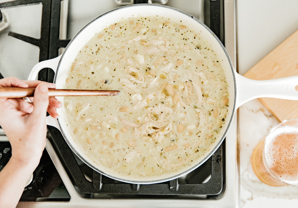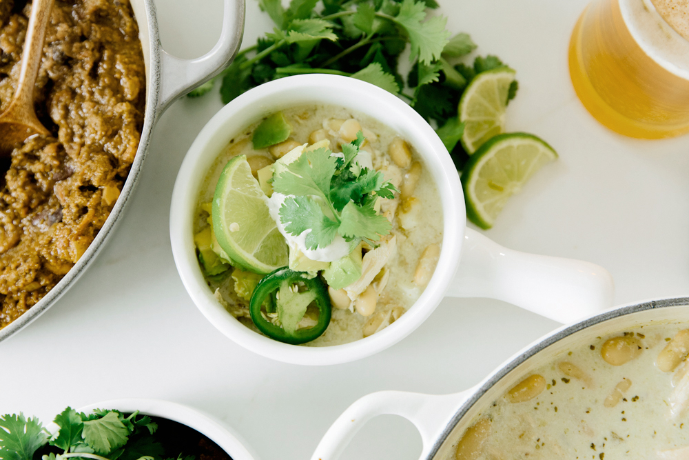 WHITE BEAN CHILI WITH AVOCADO CREAM