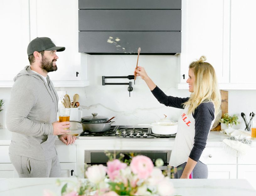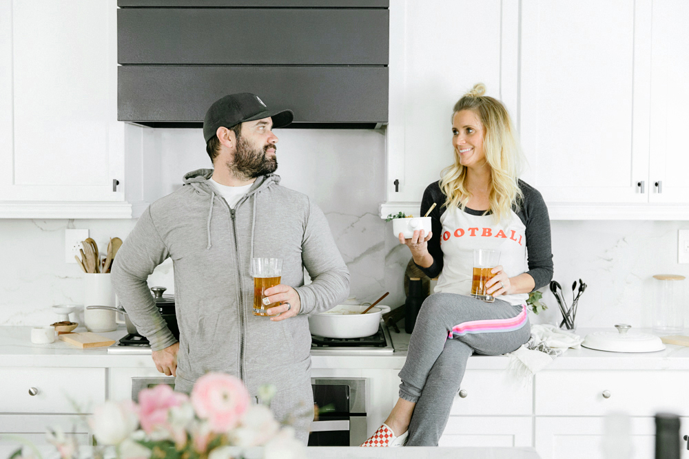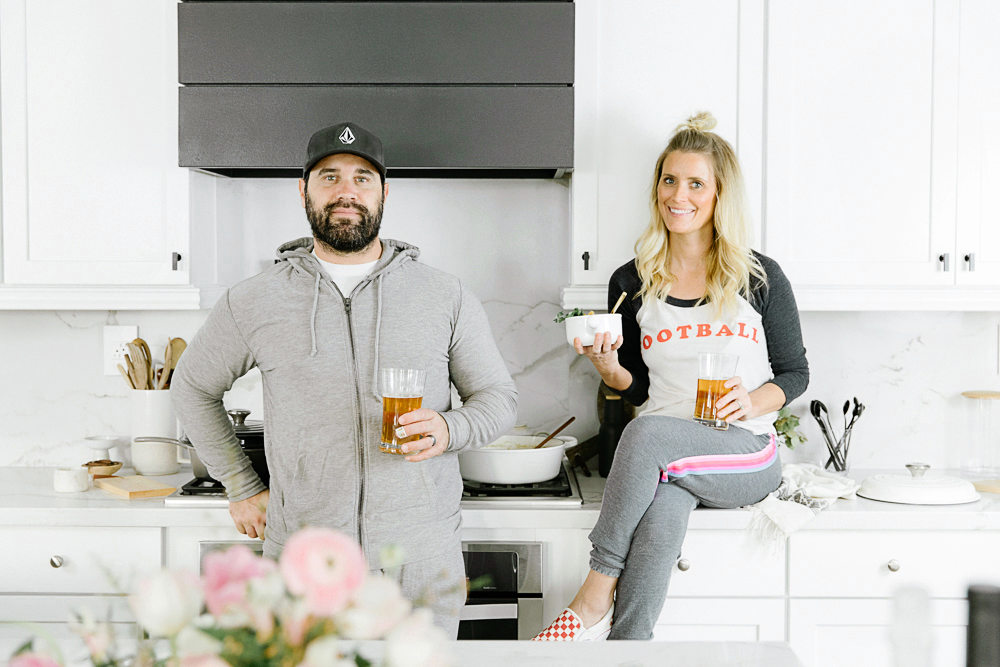 Any time spent in the kitchen, you gotta be comfy! I turn to my favorite, Chaser Brand. I love their tees and sweats! Not only are they super comfy and durable, but they are so cute! I’m wearing the Football Tee and Striped Pant. The hubby is wearing the Cozy Knit Zip Up Hoodie and Cozy Knit Drawstring Jogger.