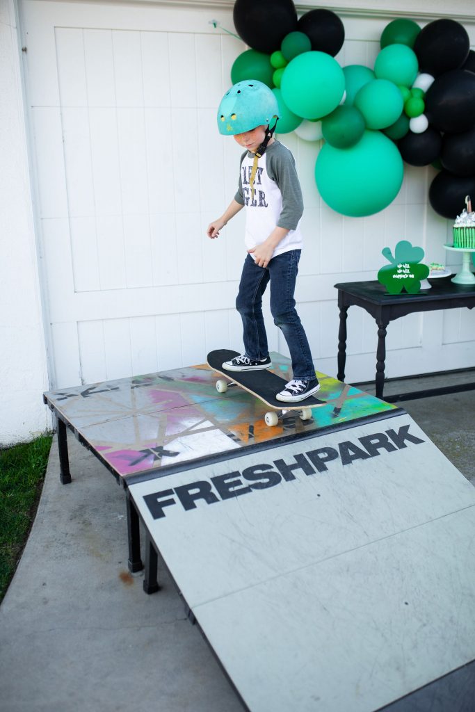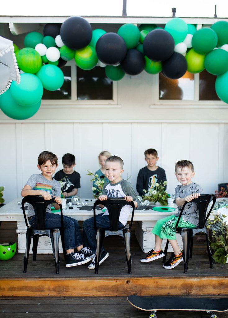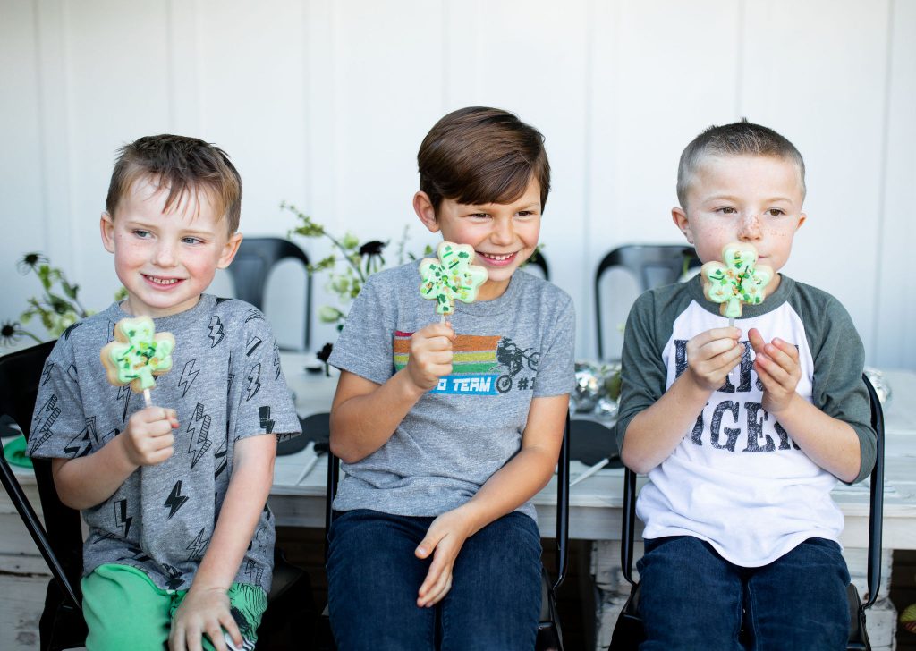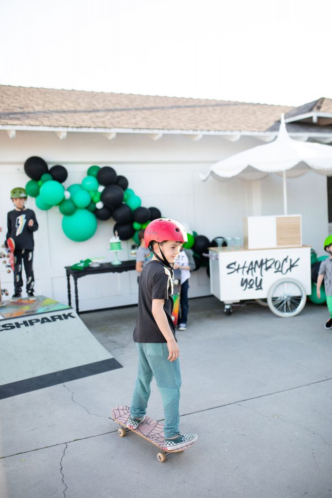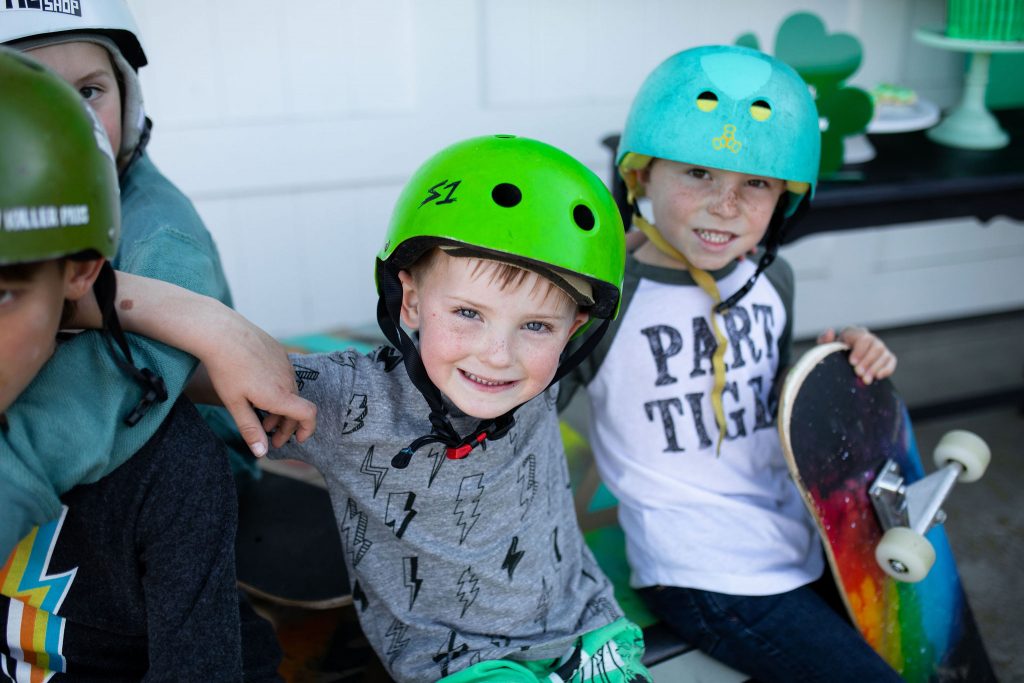 So this one is for the boys, and these boys are ready to ROCK! ShamROCK that is!! We gathered the boys in my front yard for a skate sesh, some treats, and a whole lot of green! Keep scrolling to see this cute idea for a fun St. Patrick’s Day party!!