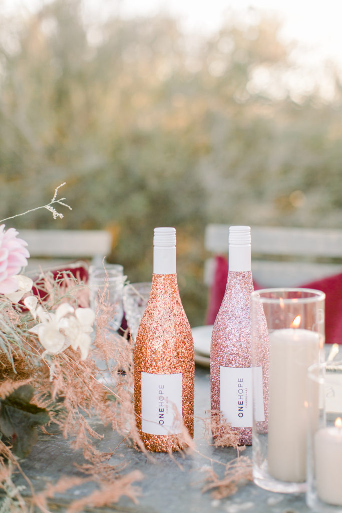 You know there are lots of toasts and tons of celebrating at receptions, what better way to do it than with sparkly bottles of wine and champagne?! Thankfully One Hope takes care of that and they recently added this gorgeous copper bottle – obsessed is an understatement!!!