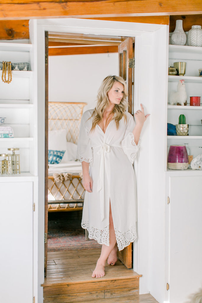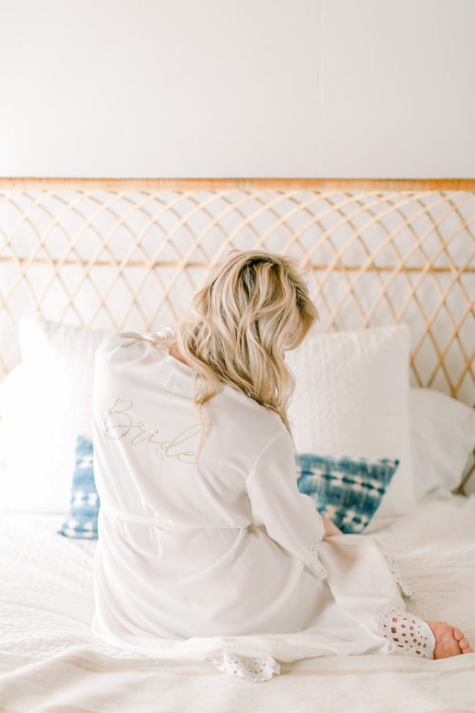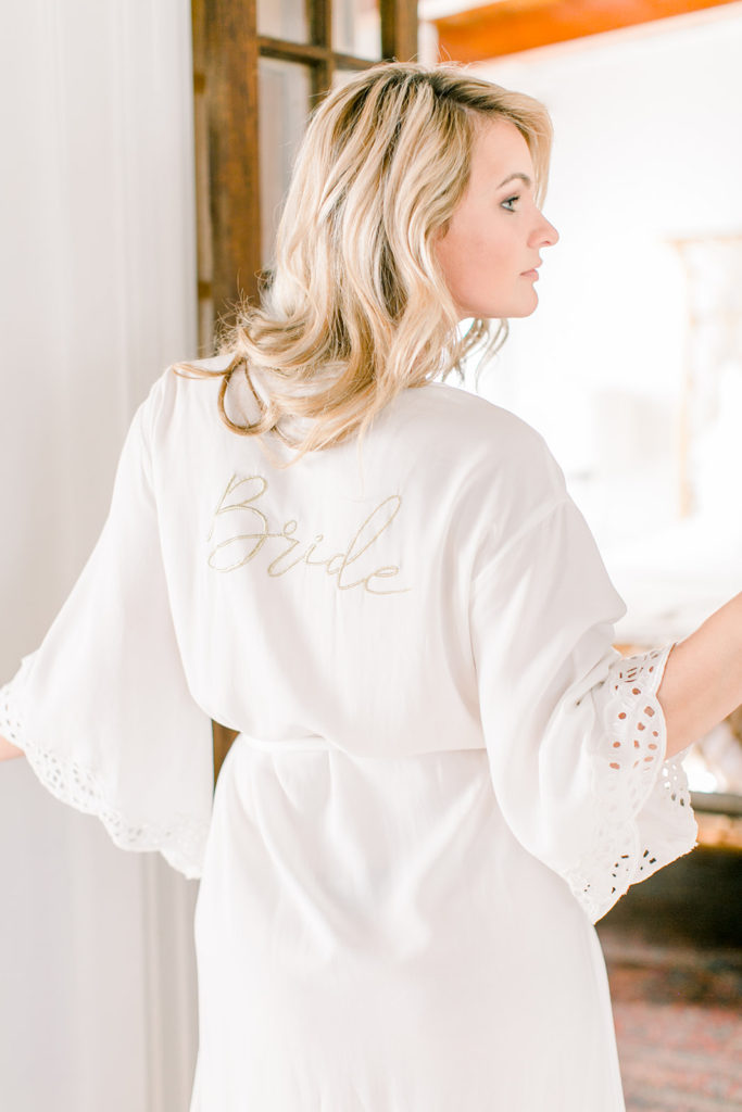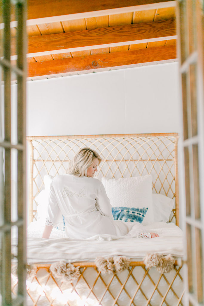 Well our bride had to get ready in The Harriet House, I mean it’s too pretty not to! And how cute is she in her Cleobella robe? The Bride on the back and the lace details are just so pretty, and we hear they have pretty robe options for the bridesmaids too…