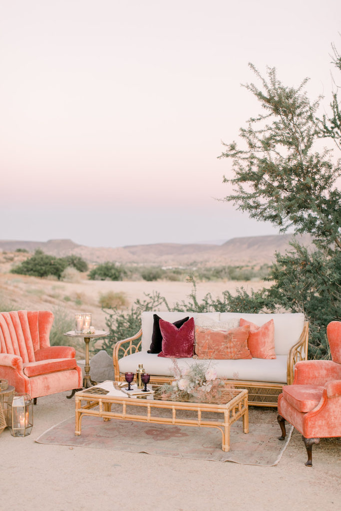 Imagine sitting with your guests and having this intimate set up to enjoy the desert sunset… Having music playing and just enjoying the beauty around you and the people you love! Pretty amazing!!!