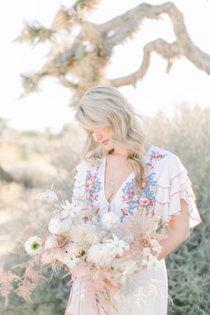 A few months ago we traveled to Joshua Tree and just made pretty all day long… We shared a home tour of The Harriet House a few weeks ago, but today we are sharing some Joshua Tree wedding inspiration! Imagine eloping with a few special friends to the desert and getting married under a Joshua Tree… Pretty magical right?!