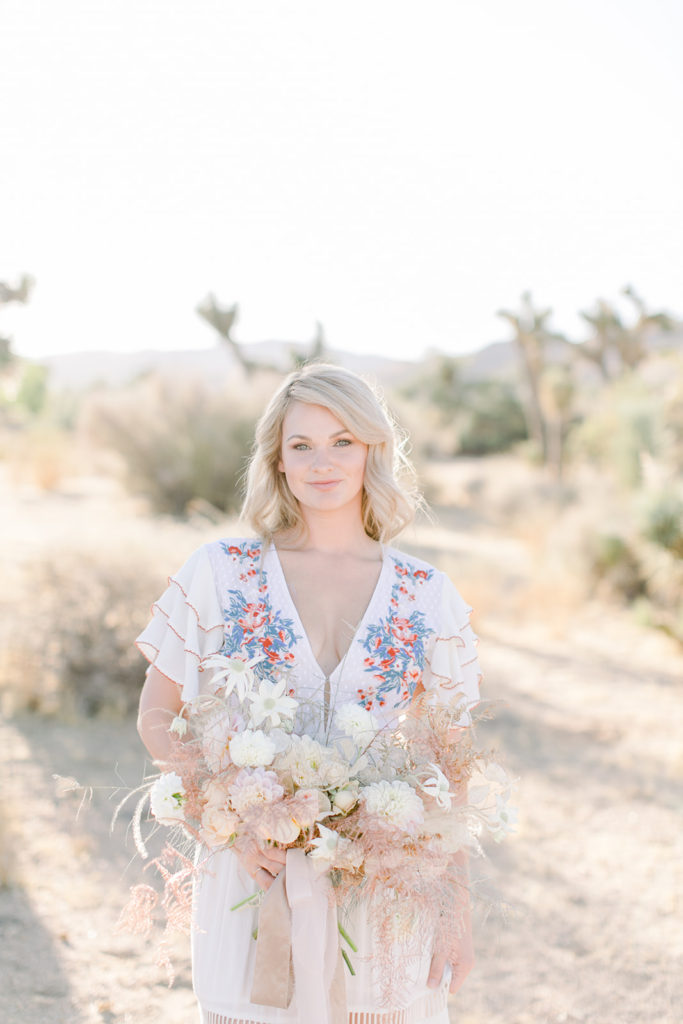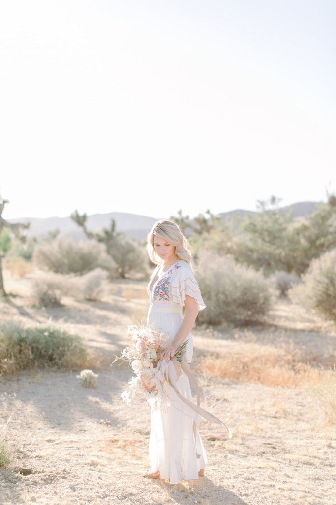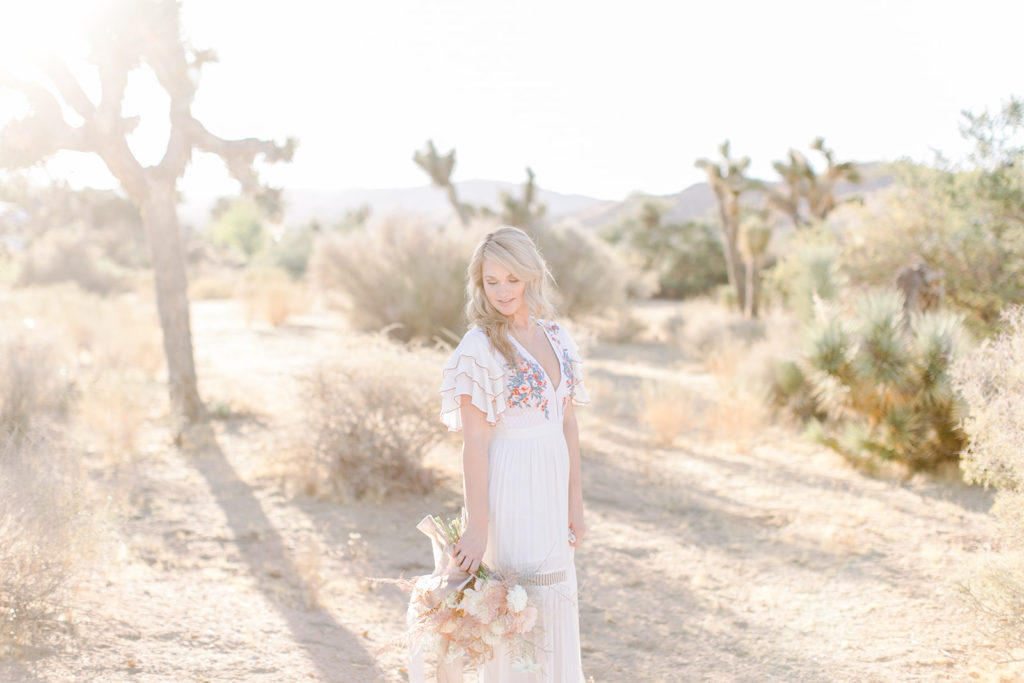 There are those Joshua trees I promised!! Our bride is looking gorgeous in her Cleobella dress. I’m sure you’ve seen this amazing dress before, it’s one of our favorites and we thought it was pretty perfect for a Joshua Tree bride, don’t you think?!