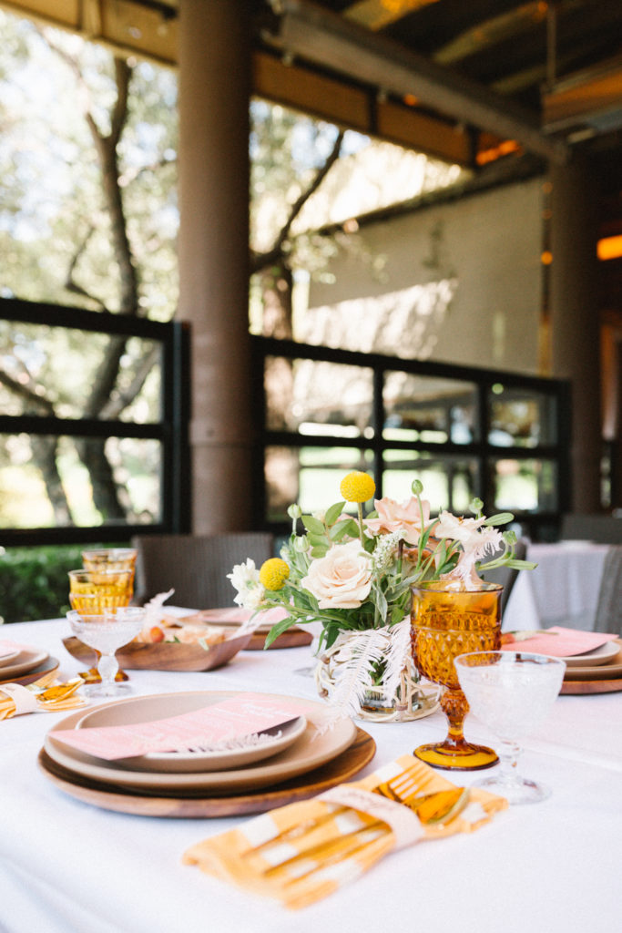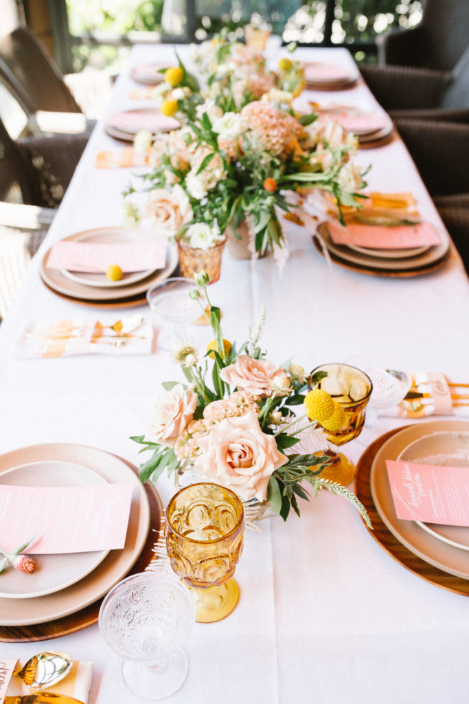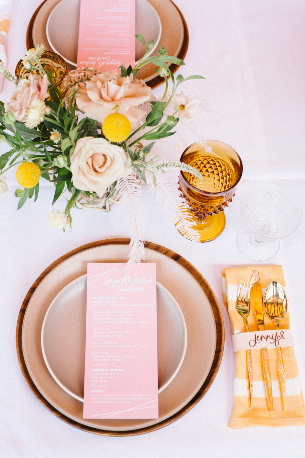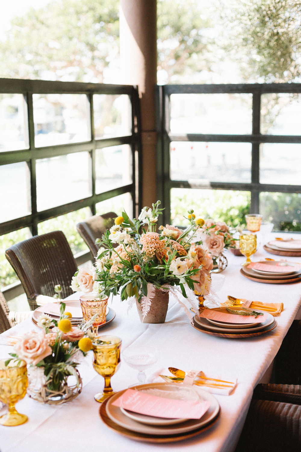 Photos by Alison BernierWe set the table with pretties from Cherished Rentals.  I love playing with her collection and I’m so grateful that there is finally someone in Orange County with such pretty pieces.  I added the delightful yellow napkins from The Little Market, just playing with one of my favorite color combos of pink and yellow again!