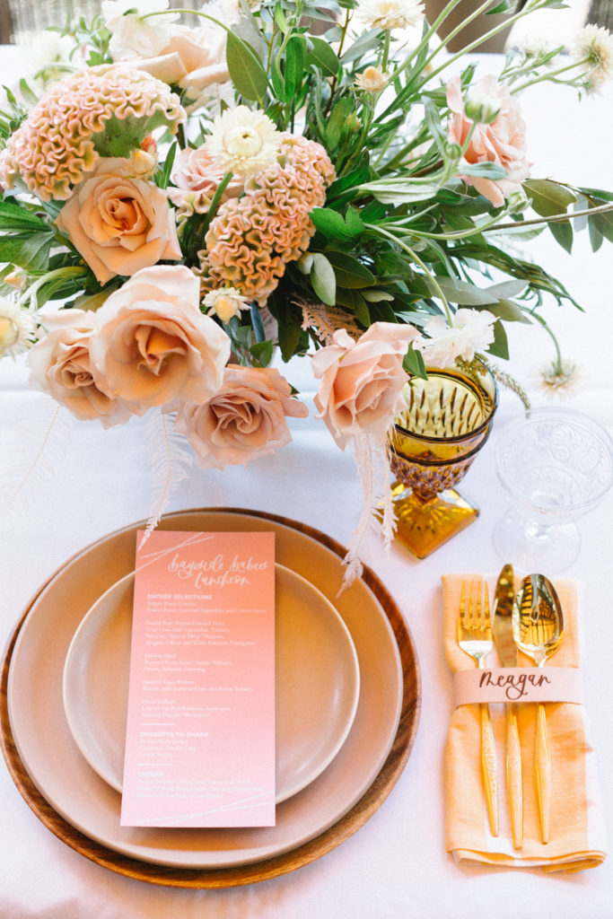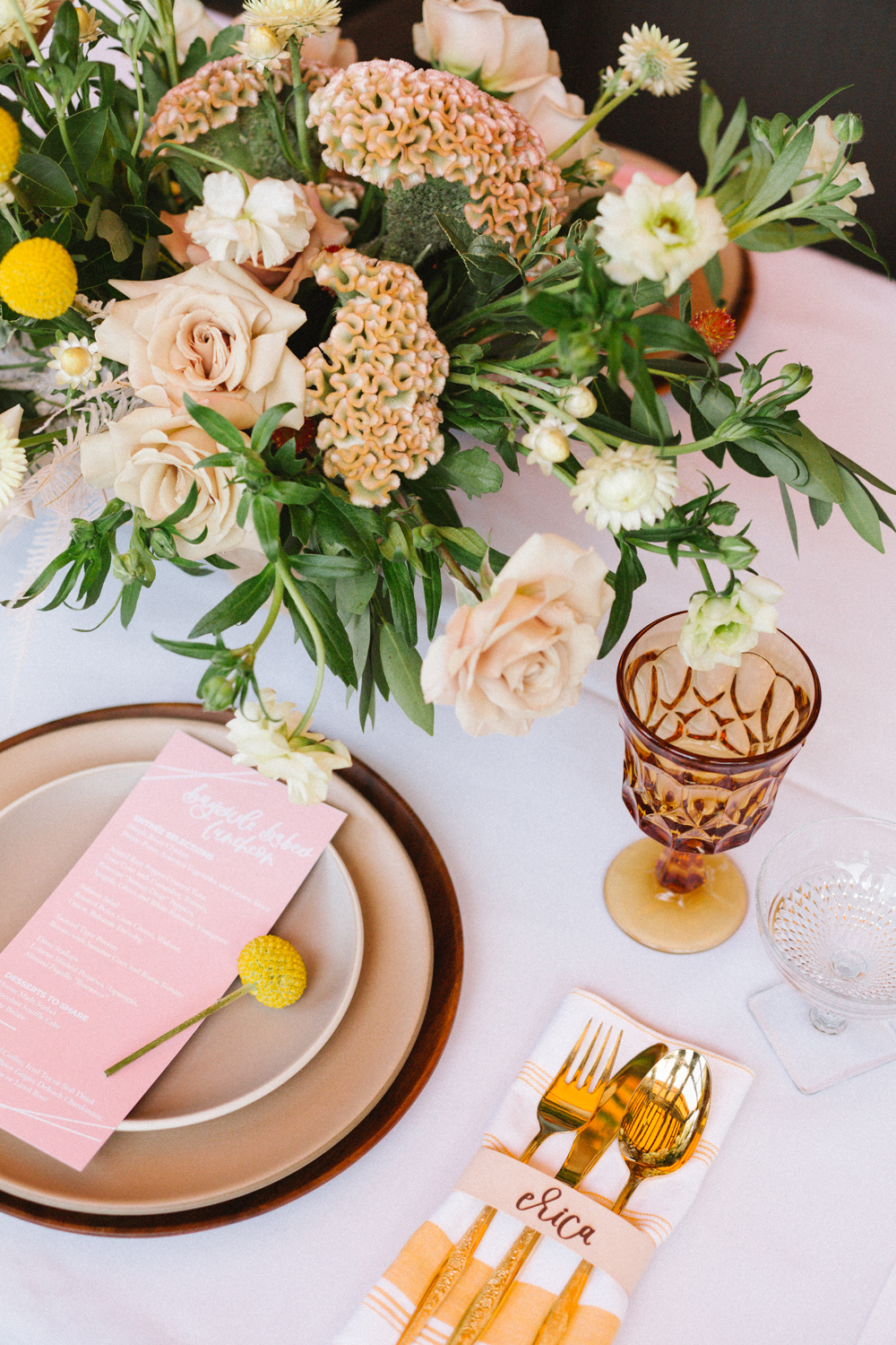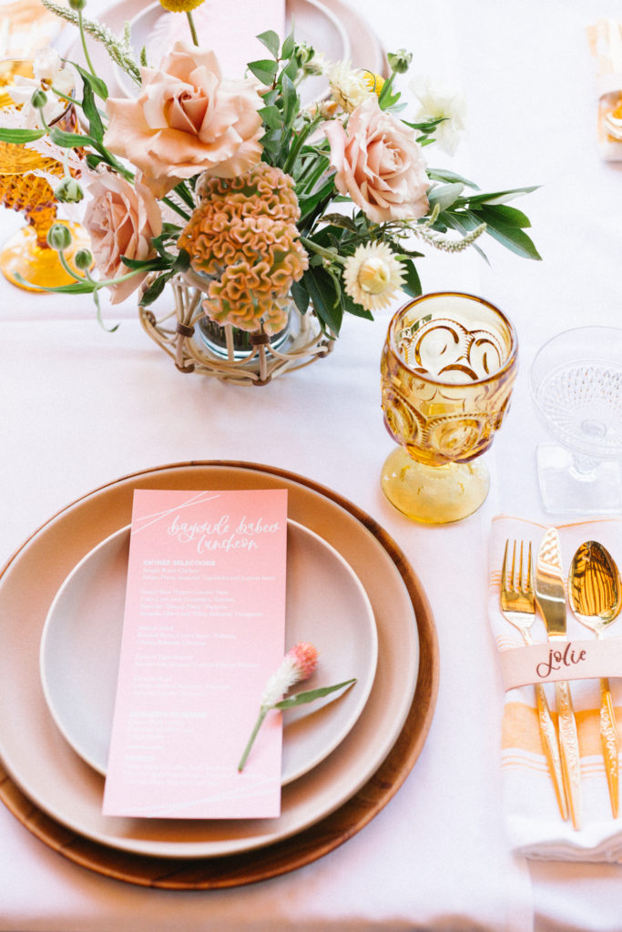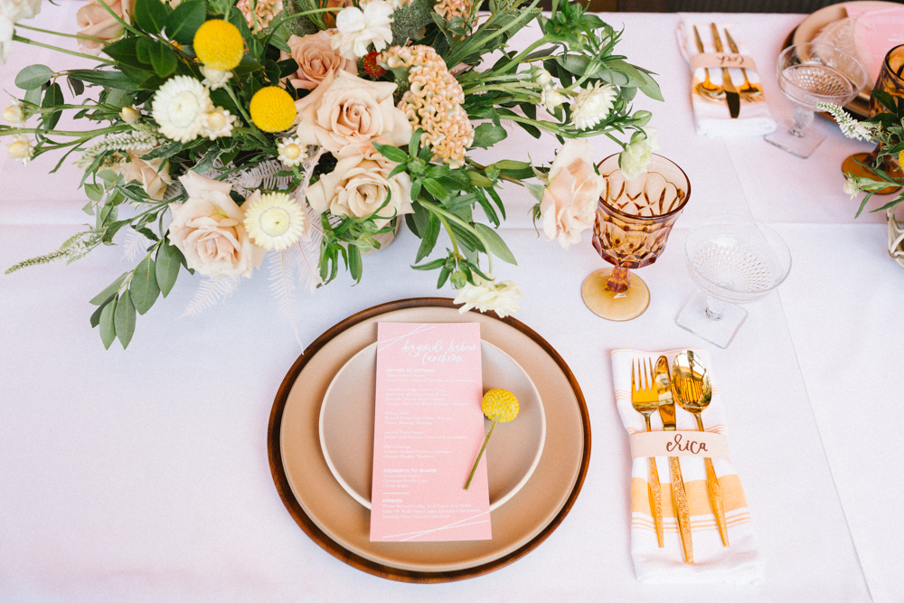 Photos by Alison BernierWe set the table with pretties from Cherished Rentals.  I love playing with her collection and I’m so grateful that there is finally someone in Orange County with such pretty pieces.  I added the delightful yellow napkins from The Little Market, just playing with one of my favorite color combos of pink and yellow again!