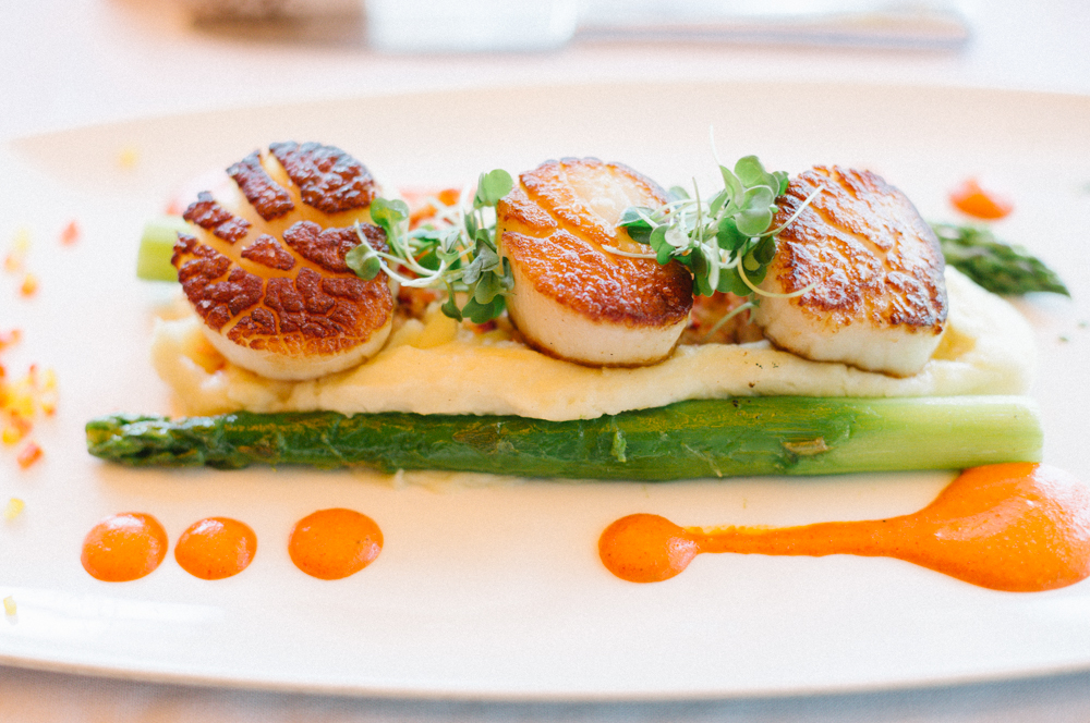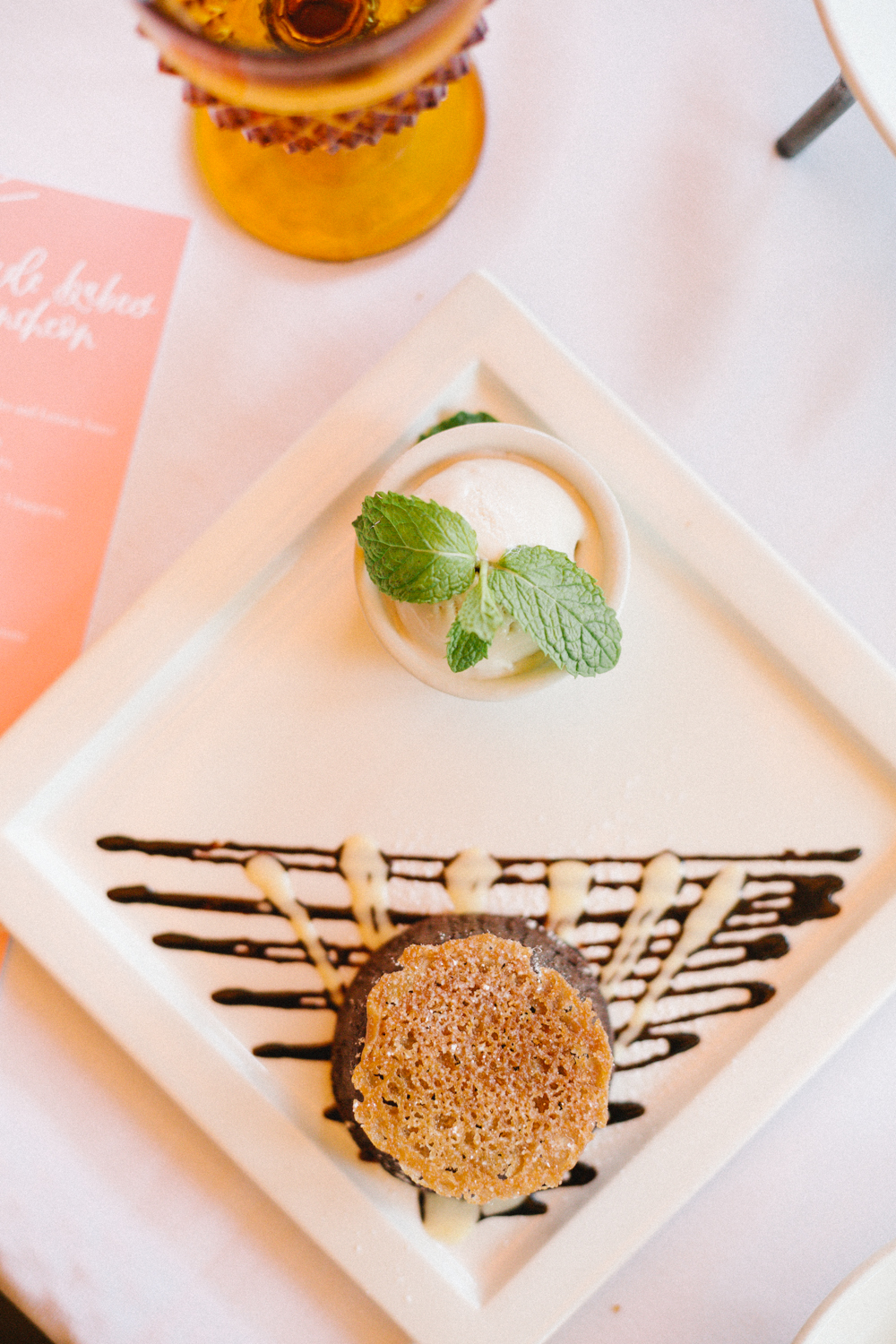 Courtney from Poppy Jack Shop did the menus and the place cards, aren’t those amazing?!  I loved the touch of tooled leather, would be so cute for any dinner party! I’m still in awe of the beautiful floral arrangements by MV Florals.  She always astounds me with her talent, but these were so unique and unexpected, I loved them!  So many fun textures and colors, such a fun and different idea for Fall florals. Now isn’t this a pretty table?!  I’d be more than thrilled to join my lady friends at it, and I did!!  Ha! Here’s Leah and I ready to stuff our faces with all the food and all the wine, haha!!!Cheers ladies!!! Now for a look at the food… I must warn you, if you’re hungry veer your eyes away, or there will be drool….I ordered the scallops with lobster mash potatoes, the diet was out the window this day!!! And dessert!!!  Oh the dessert, we each got to taste a little bit of everything and it was oh so perfect!! Thank you Bayside for this lovely afternoon!!  Like I said, Bayside is the perfect spot for lunch or brunch with friends – they also have live music a few days/nights a week so make sure to check that out!!