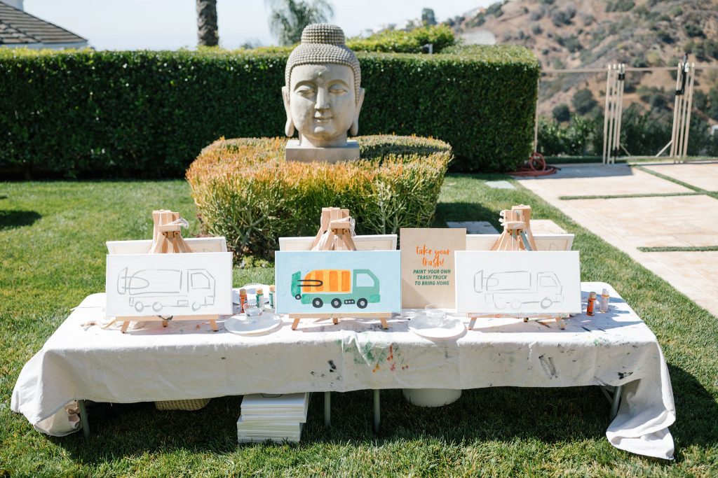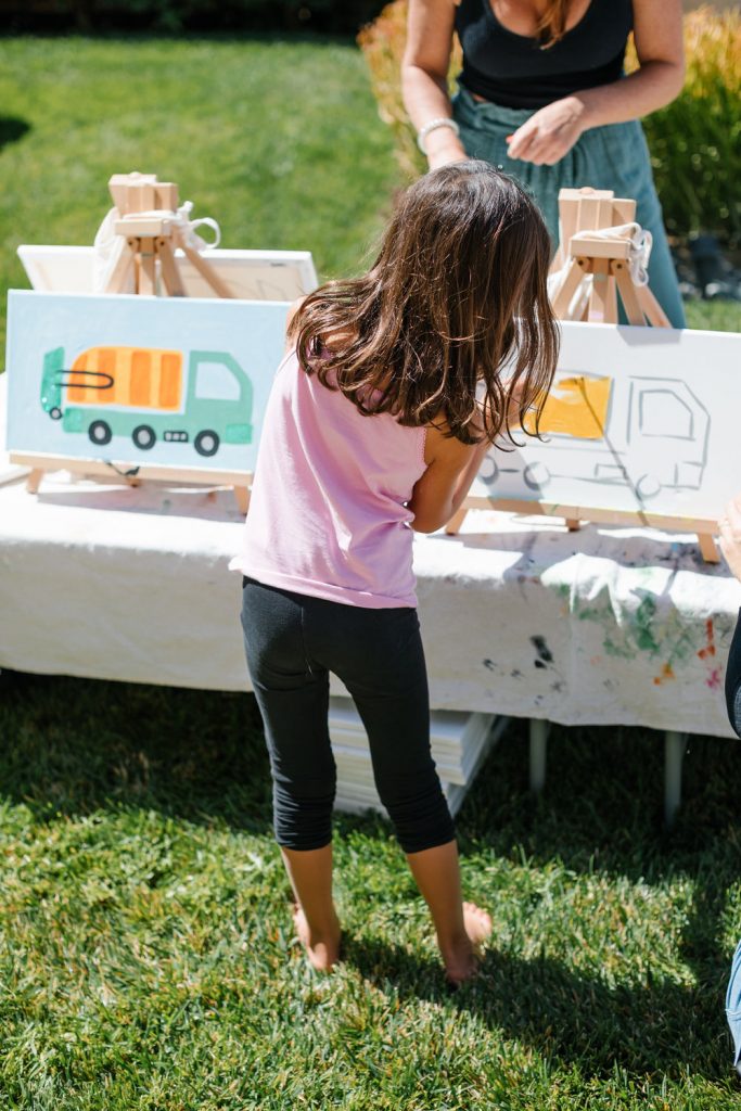 The kids needed a fun activity and of course we thought of our friends at Camp Lila! They all got to paint their very own trash truck! How fun is that? And such a great favor to bring home and showcase in their rooms!