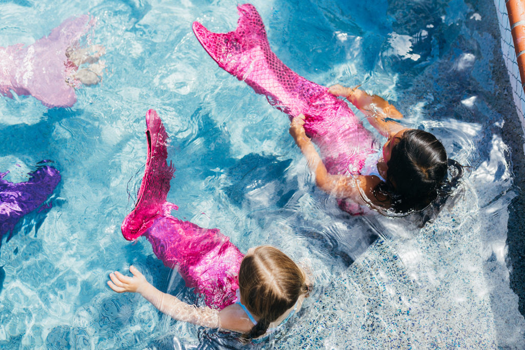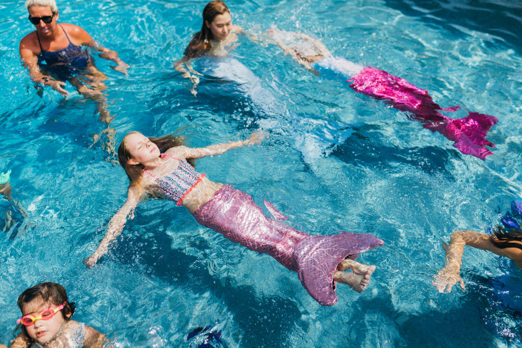 Time for mermaid fun!! We had a few mermaids from Aquabatix come and do a little synchronized swimming routine for the girls and then splash around with them too! It was fintastic!