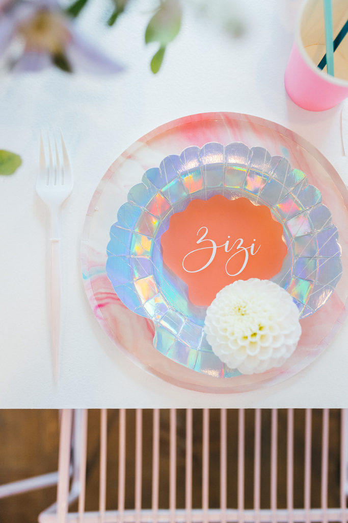 For the tabletop I used the pink marble plates from Oh Happy Day mixed with the shell Meri Meri plates. Of course I added our favorite L’entramise flatware – love the simple modern vibe!! Details were by Creative Amme, who always does the MOST amazing job!