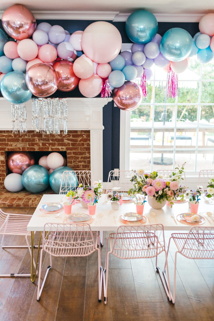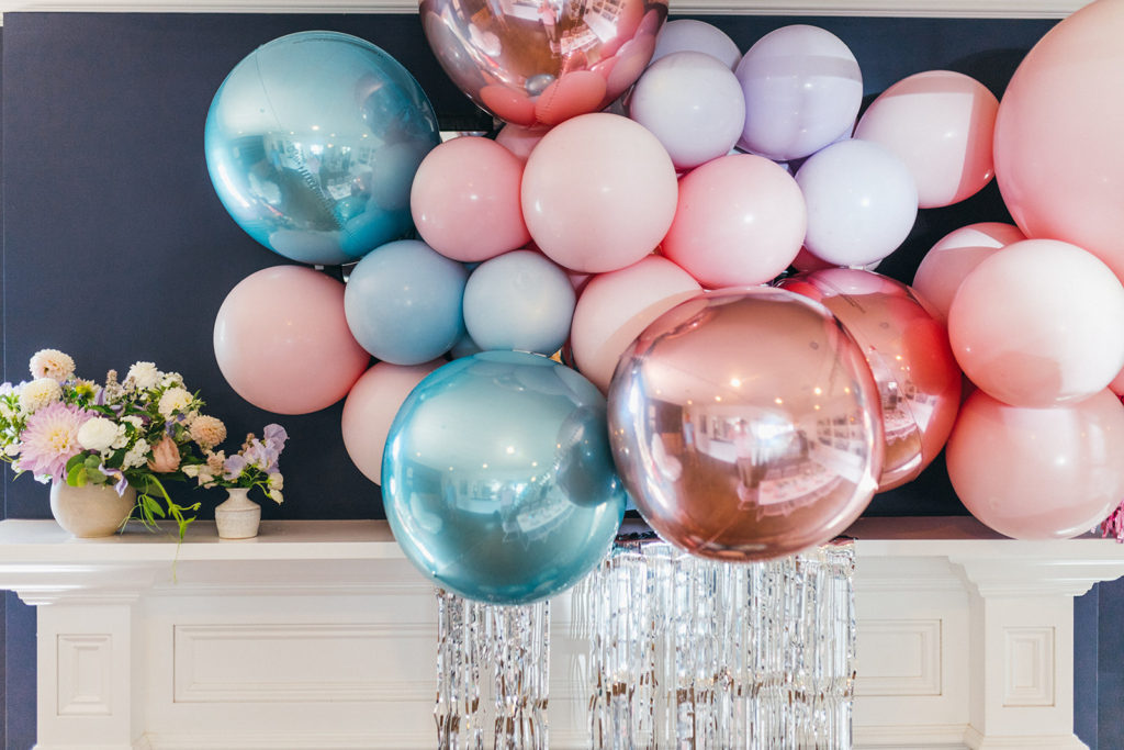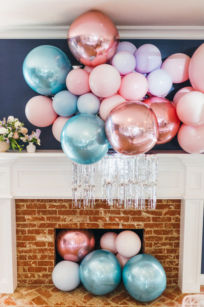 The balloons are basically my favorite ever! The Pop Shop took my vision and just totally nailed it! I love the additional fringe and the whole color scheme!! The balloons over and in the mantle look so fun, right?!