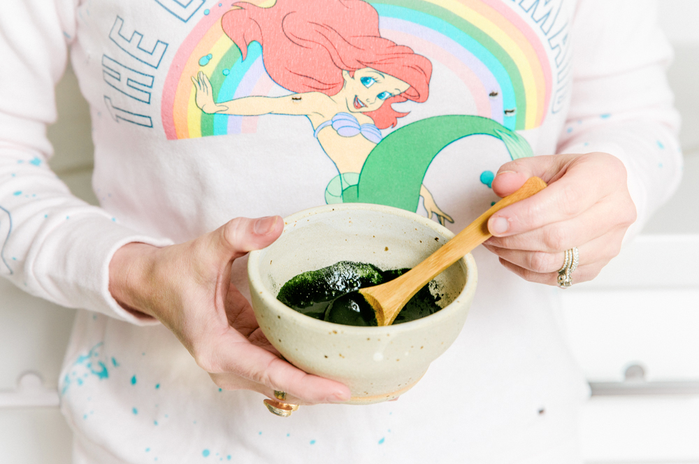 Let’s dive into this emerald green mermaid magic! This mermaid mask is a super-food mask that will purify, nourish, and soften your skin! You will be as glowing as the princess herself, Ariel! This under the sea mask is made up of only two ingredients. Spirulina—one of the most nutrient-dense superfood on the planet—packed with protein, minerals, vitamins, gamma-linolenic acid (GLA), and antioxidants to neutralize free radicals, fight inflammation, and combat the signs of aging.