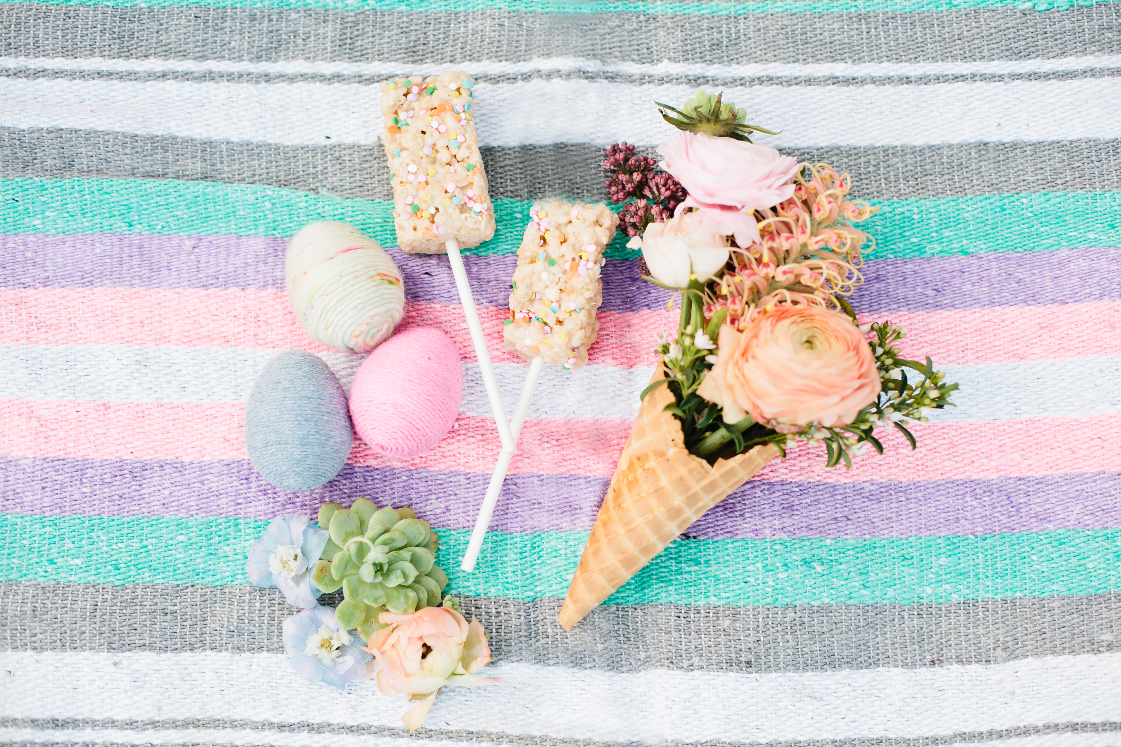 Easter is right around the corner and as per usual, it’s all about the kiddos, and why not?!  They are the ones who make it fun!!  This little playdate was inspired by our favorite Gunn & Swain and their amazing new blankets for Spring; the beautiful pastel striped Seychelle’s blanket and the Pantone colors of the year blankets, Rose Quartz and Serenity.  We love love love the colors and they remind us of flowers and ice cream cones, two things we just can’t live without!!  Once we saw these blankets we knew we had to create something pretty with them, then our buddies at Hatched Baby got involved with all of their adorable Spring attire and voila, this cute photo shoot playdate was born!  It wouldn’t be complete with out our girl Megan Welker shooting all of the littles and their fun, so sit back and take a scroll… We hope you get tons of inspiration for your own Easter egg hunt and fun with your families!!  This shoot will also be on Mini Style Blog tomorrow!