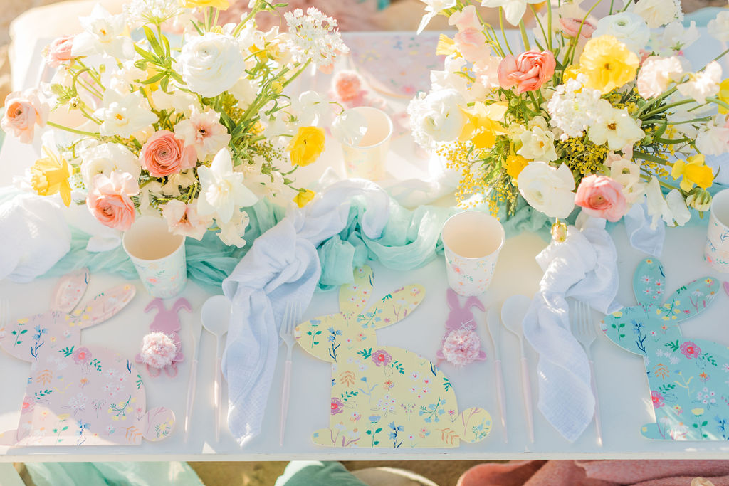This Easter shoot was ultimate cuteness and details overload with the beautiful beach backdrop. From the muted pastel colors, and textured table. The theme “Beach Bunnies” was to die for with the cutest little models around.