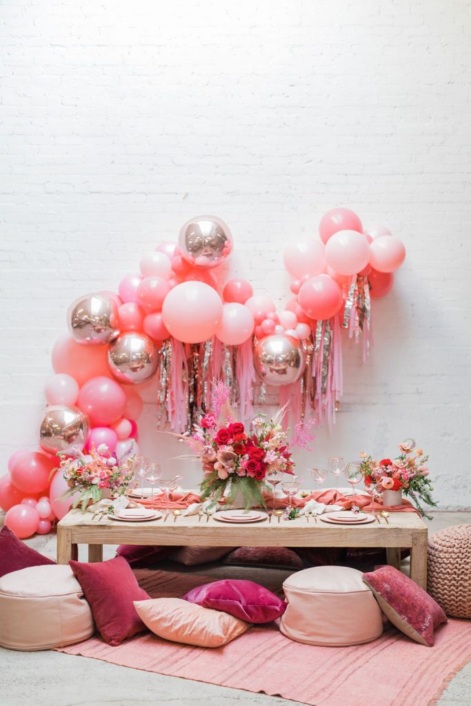 I love me some Valentine’s Day and I love me some 80’s movies!! This shoot was inspired by Pretty in Pink – one of my favorites that I watched over and over again when I was little. We went all pink with tons of great details with nods to the infamous movie. One of my favorite aspects of this shoot were the gorgeous florals by Cobra Lily and the rad balloons from The Pop Shop. A Valentine’s Day classic if you ask me!