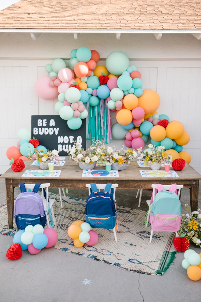 I’ve had the concept in my mind for this shoot for a while. Since last year we didn’t have a “back to school” I had to bring it back for 2021. It was a fun thing to celebrate, going back to school and also to celebrate being kind! It’s one of the most important lessons we can teach our children. My lovely friends Alison Bernier, Sweet Salvage Rentals, The Pop Shop, Poppy Jack Shop, The Lamb & Poppy, and Really Cute Sweets were all happy to be a part of this message. And I love them all for it!