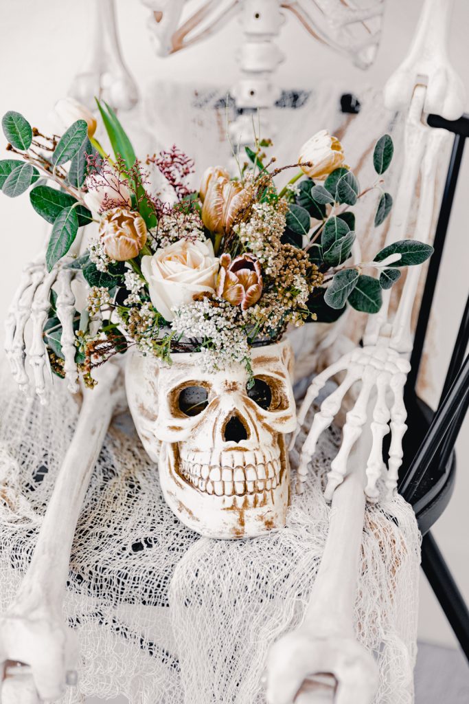 This black magic flower post was one of those DIY ideas where it takes a couple of times to come out the way I wanted. I initially tried to dye the flowers to make them black, but they were coming out blue. So last minute, instead of squashing the idea, I tried using brown hues. They came out better than I thought! I like how they aren’t the traditional spooky colors, a more feminine look.