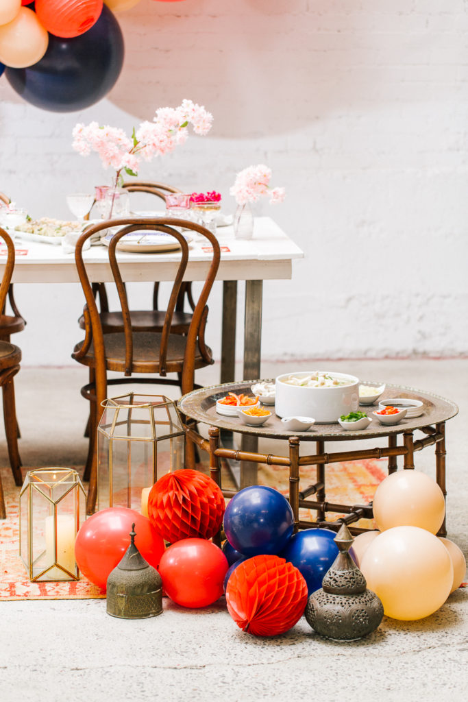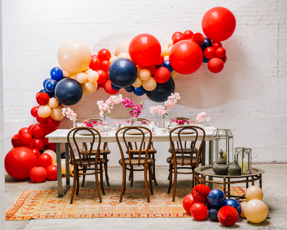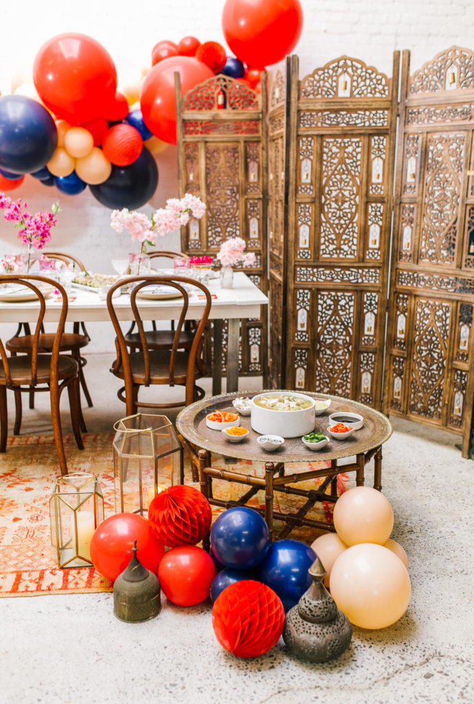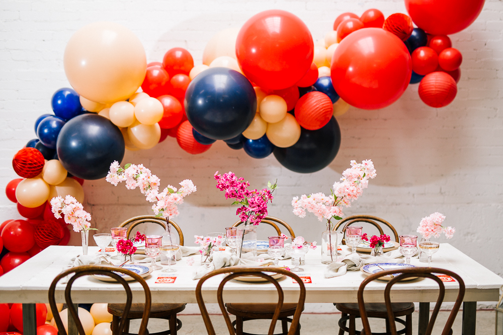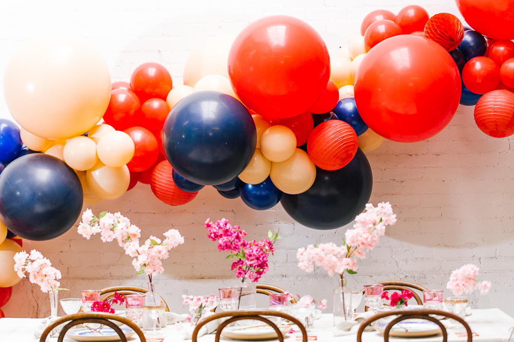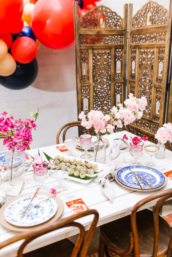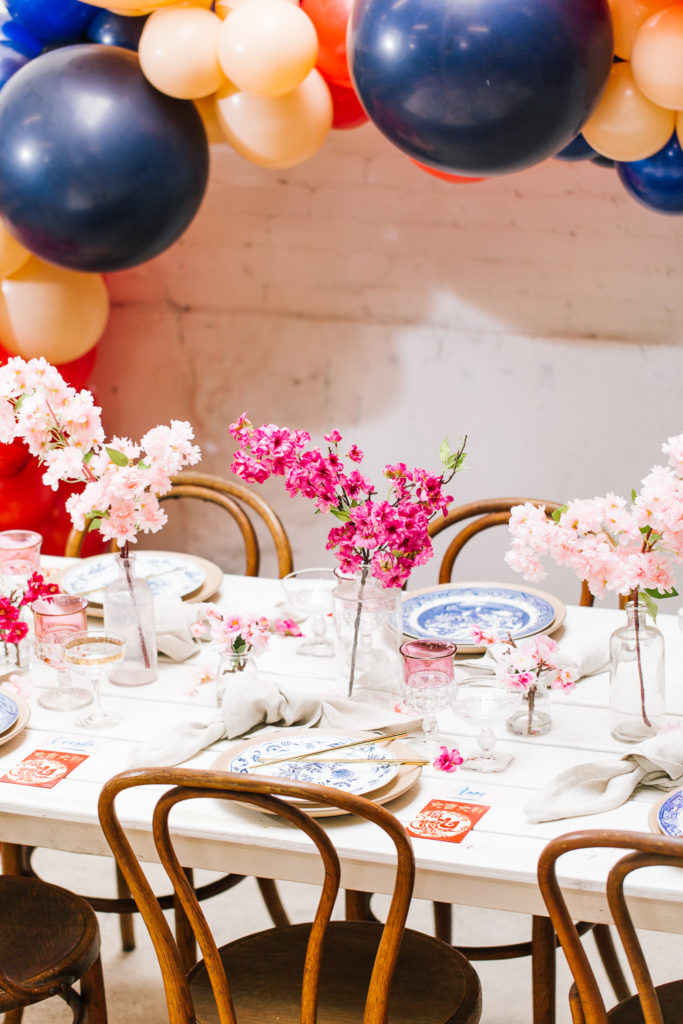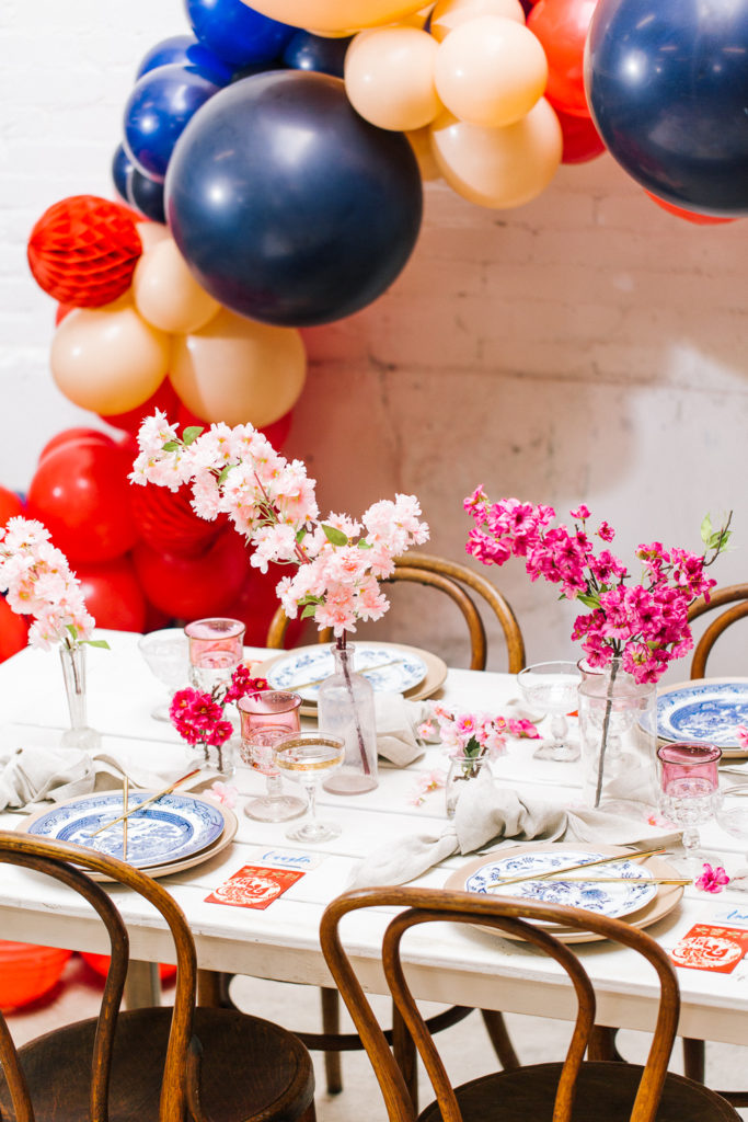 Now this is a party! How fun would it be to ring in Lunar New Year like this?! The Pop Shop nailed it with the balloons – I saw a few different inspiration images with the classic red with a mix of blush and blue and I was hooked! She took those colors and made this gorgeous installation, and just, WOW!!