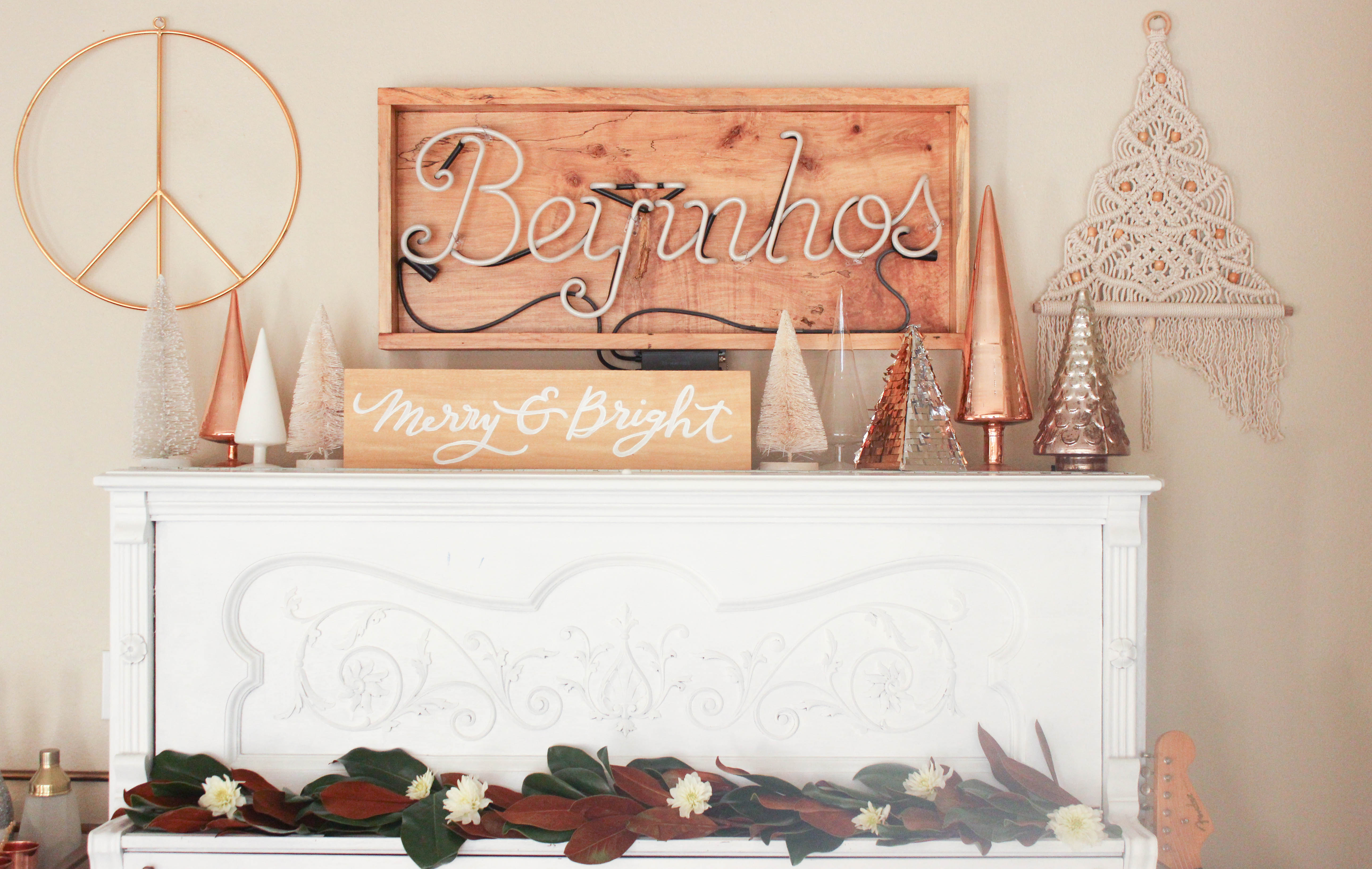 Here are ways we each decorated ours in our home! I created a little winter wonderland over our piano. We spend lots of time as a family listening to my husband play for us, I see lots of Christmas carols being sang in this little nook this month!