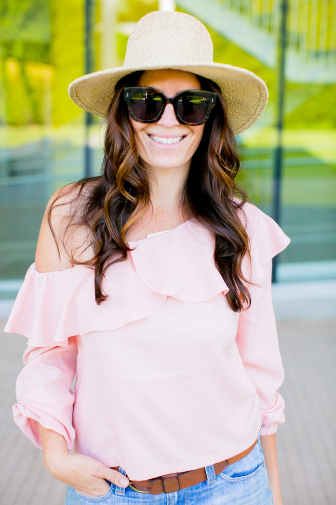 Last up, a sexy top and my favorite old cut offs. Doesn’t eveyrone have a favorite pair of shorts or jeans? I have had these ones for almost 10 years. Although I’ve bought a million more pairs in between I always go back to these. Anyways, I love this off the shoulder top by Mink Pink. It’s just so effortless! Added in my Target sandals that I literally wear every day and this Brixton hat that is quickly becoming my new favorite.
