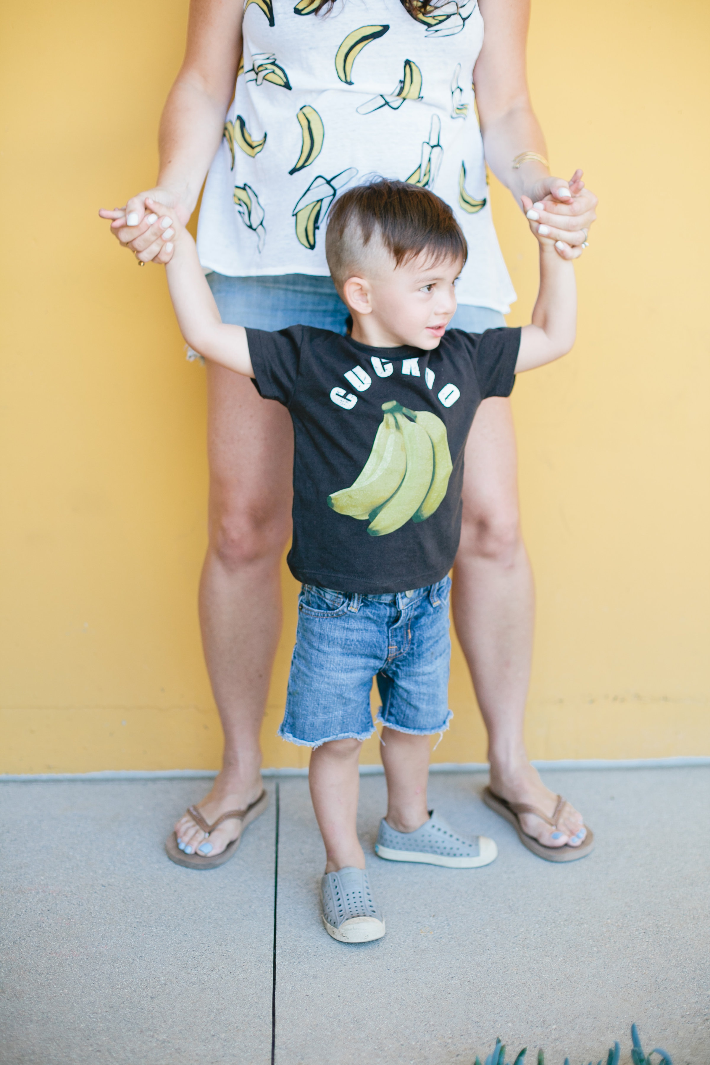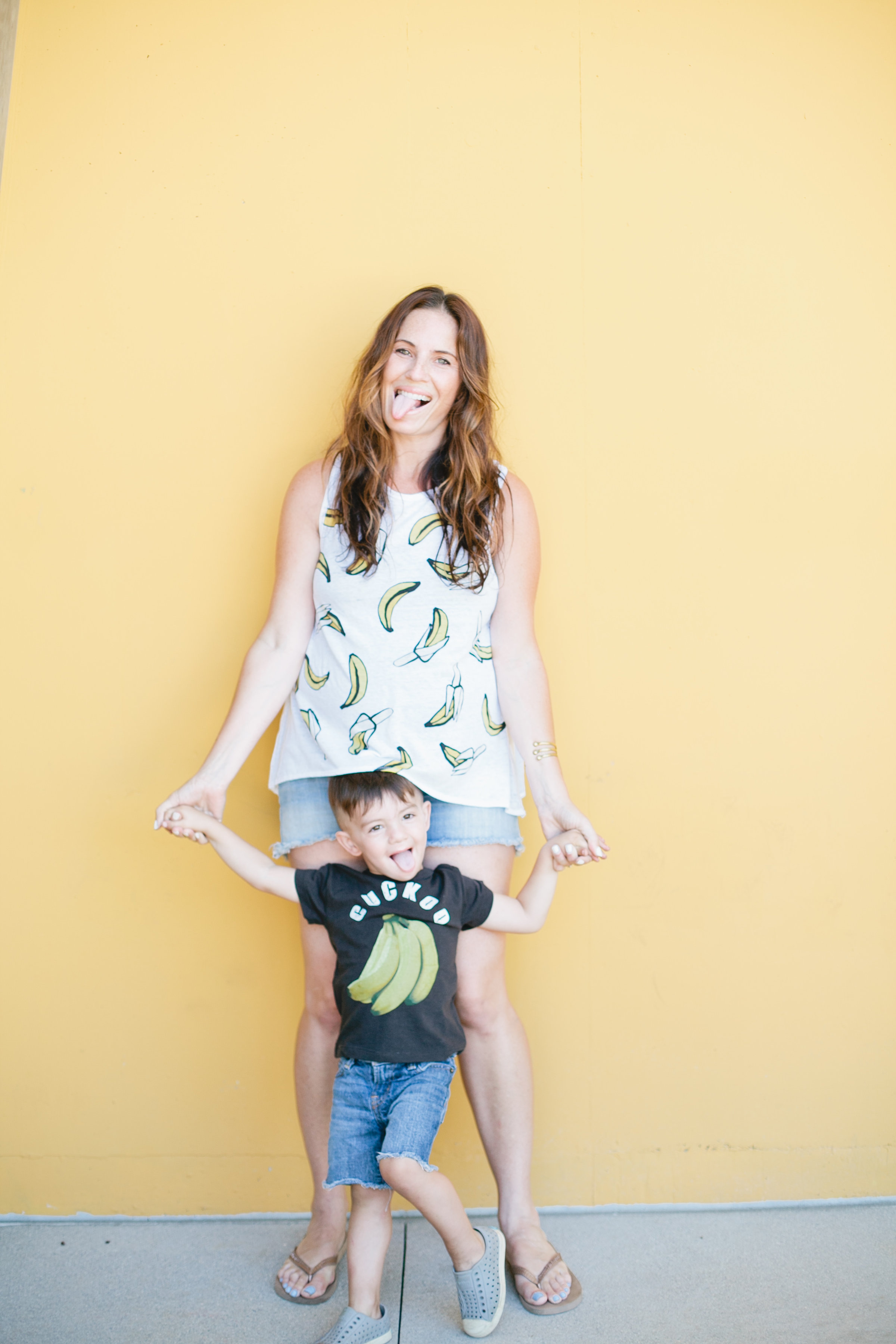 Court is the wildest guy around and sometimes he drives me bananas, so these banana tees were quite fitting. He is usually pretty cuckoo and it says so on his t-shirt, haha! Plus, I call him monkey a lot, just another reason the bananas theme worked for us. I’m wearing the Go Bananas tank which is beyond comfy!