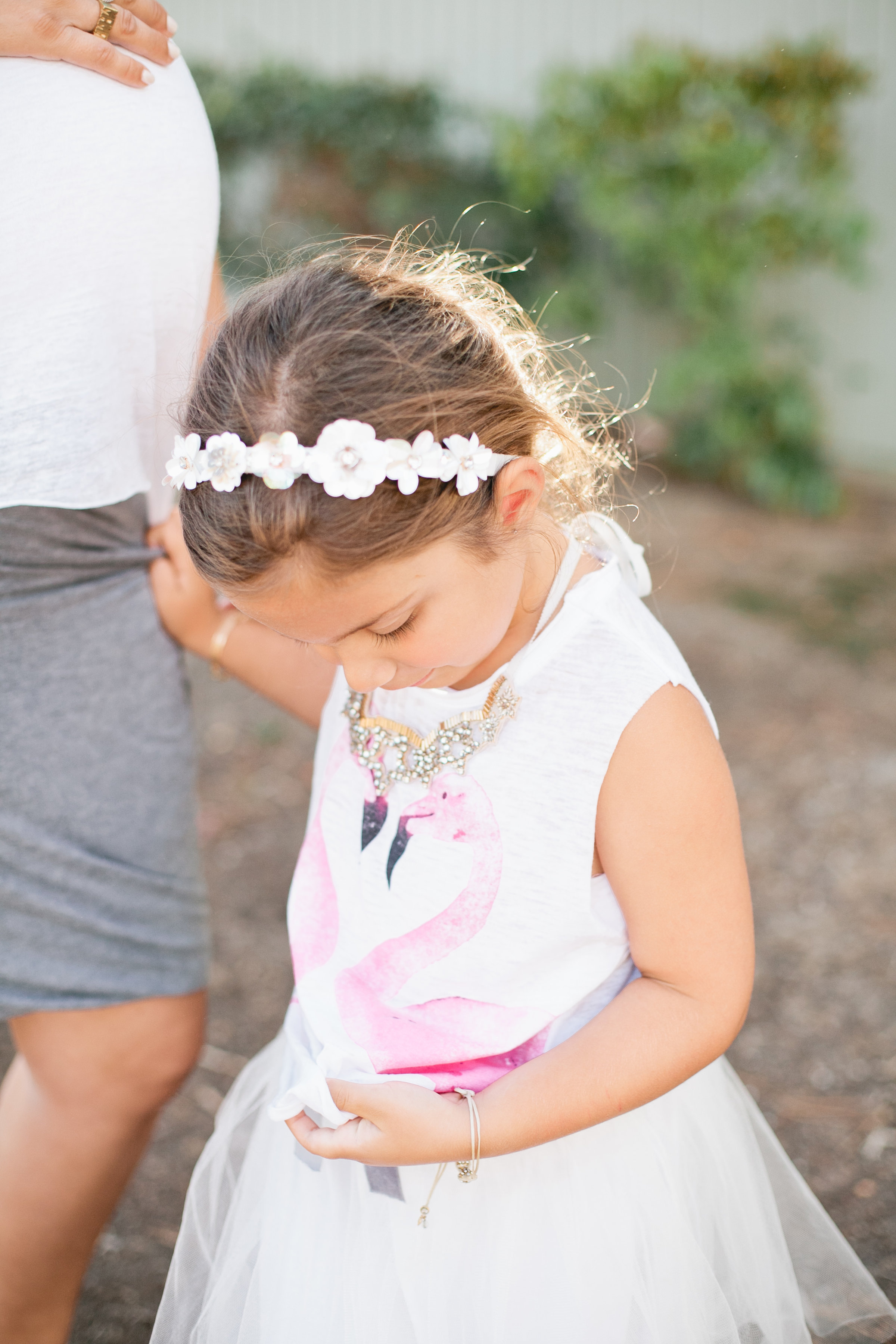 Edie loves flamingos, she actually calls them mangos. It’s pretty cute. She’s the ultimate girly girl with her favor color being pink of course. So naturally, she would be drawn to the pink flamingo. The California tee I’m wearing went well with the pink flamingo. I’m loving our little 80’s vibe going on!