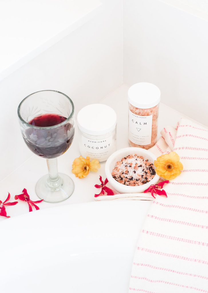 Combine all ingredients, and run a warm bath and sprinkle salts into the warm water. Grab yourself a glass of wine, and soak and relax while the salts do all the work for you!