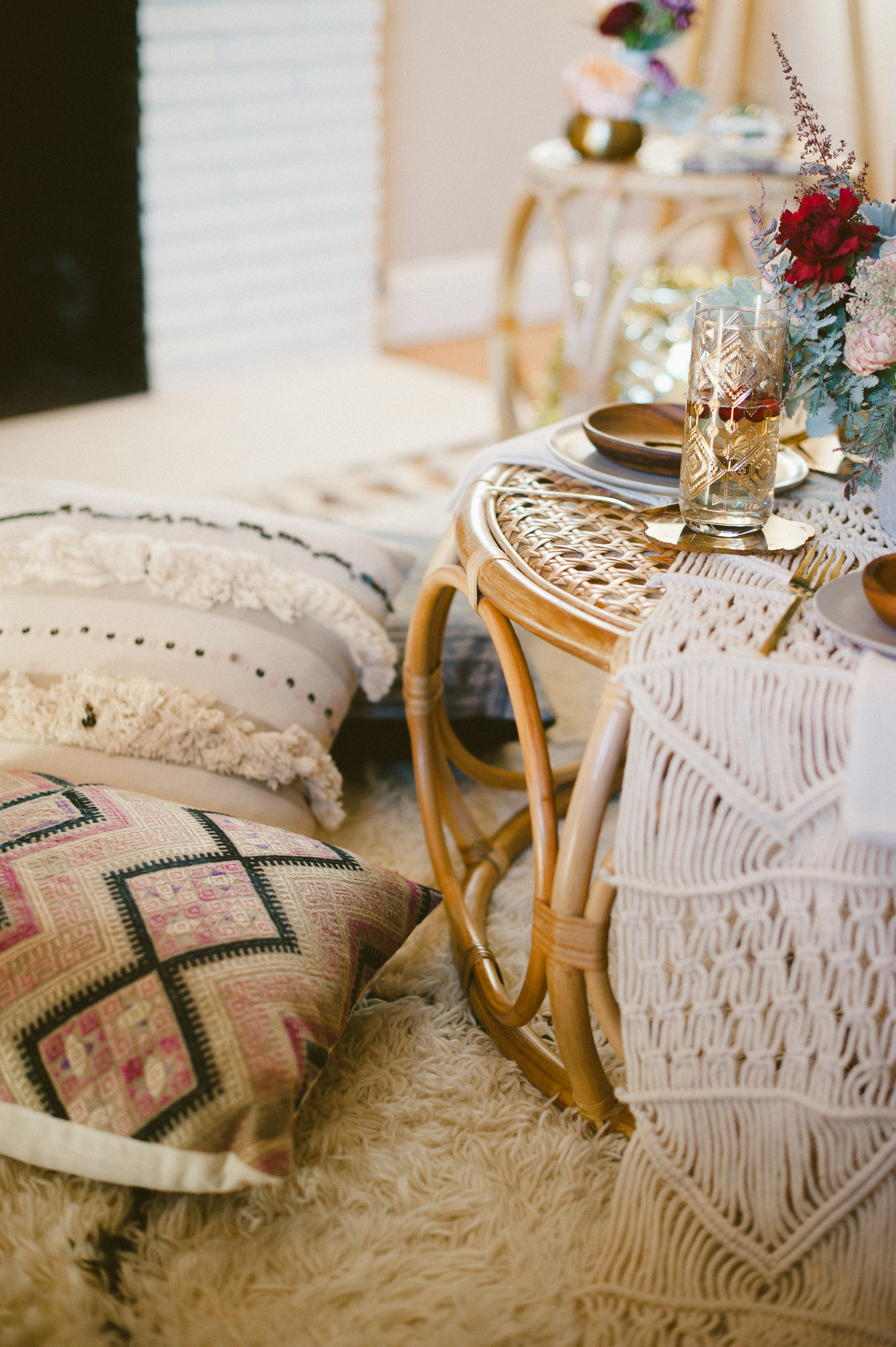 I used my macrame table runner from Anthropologie , having a basic neutral table runner is an essential for entertaining, endless ways to dress it up!