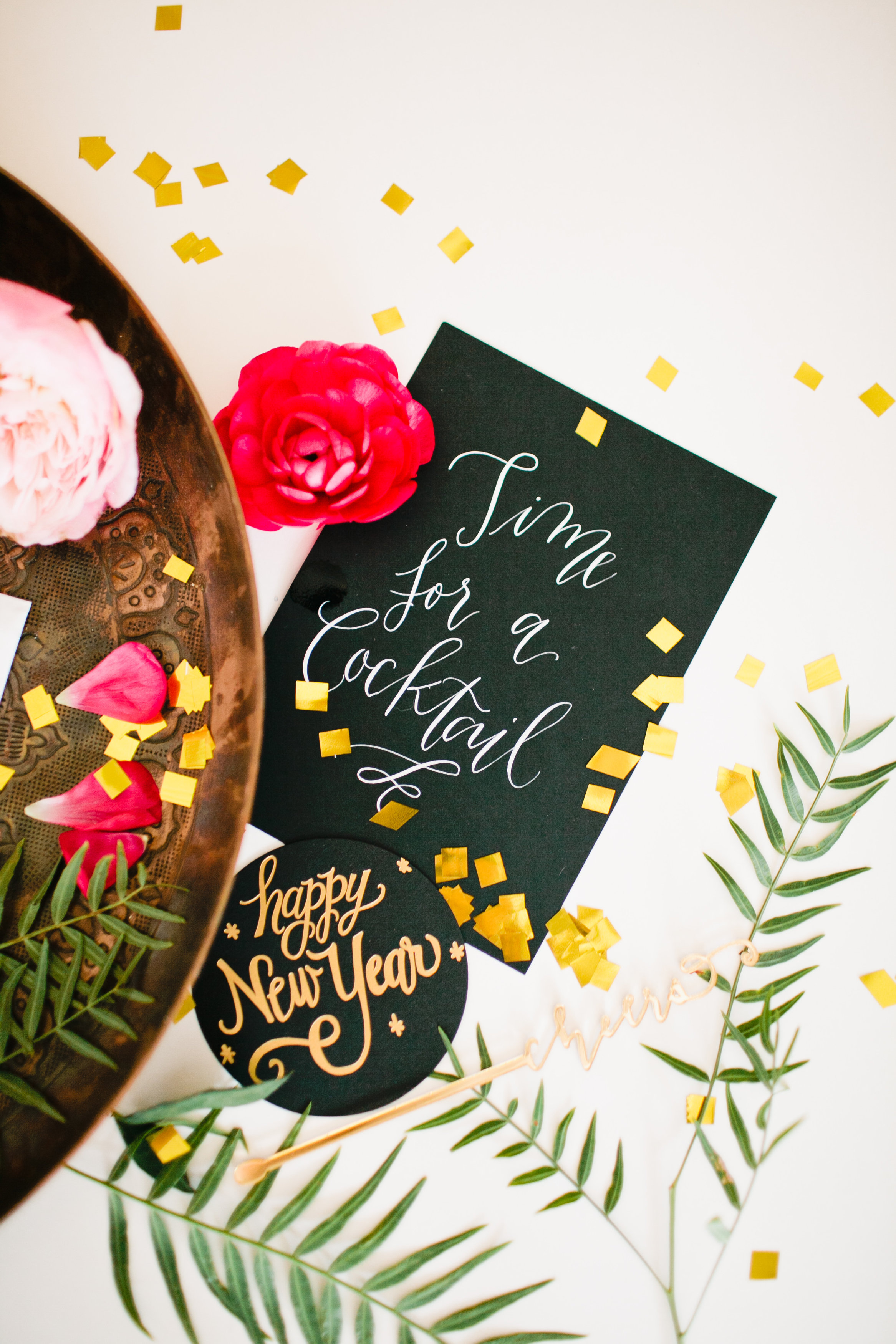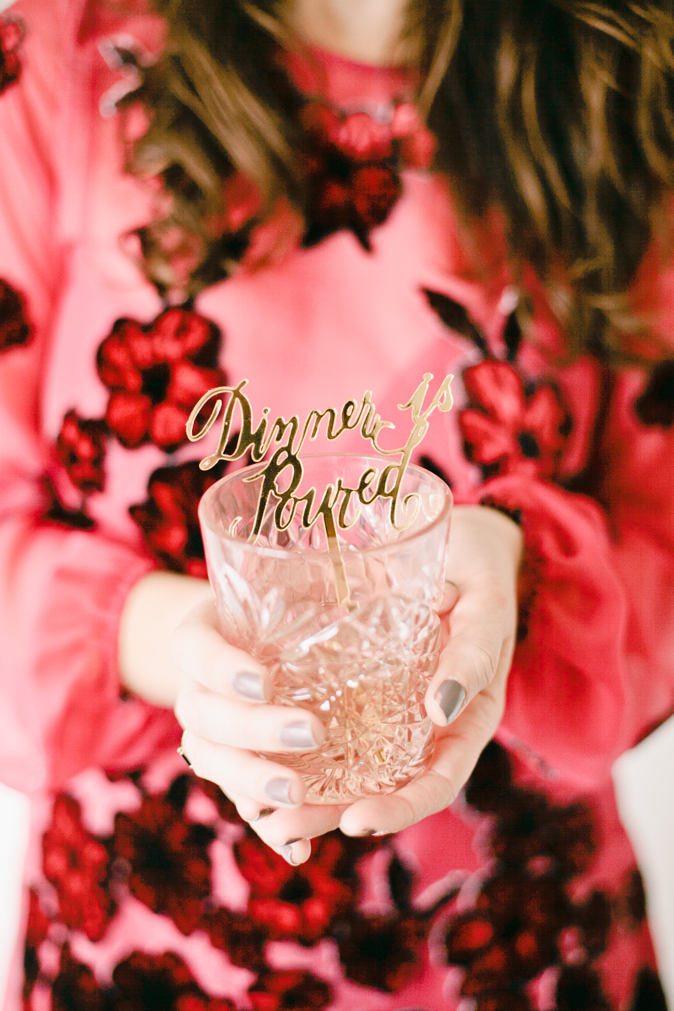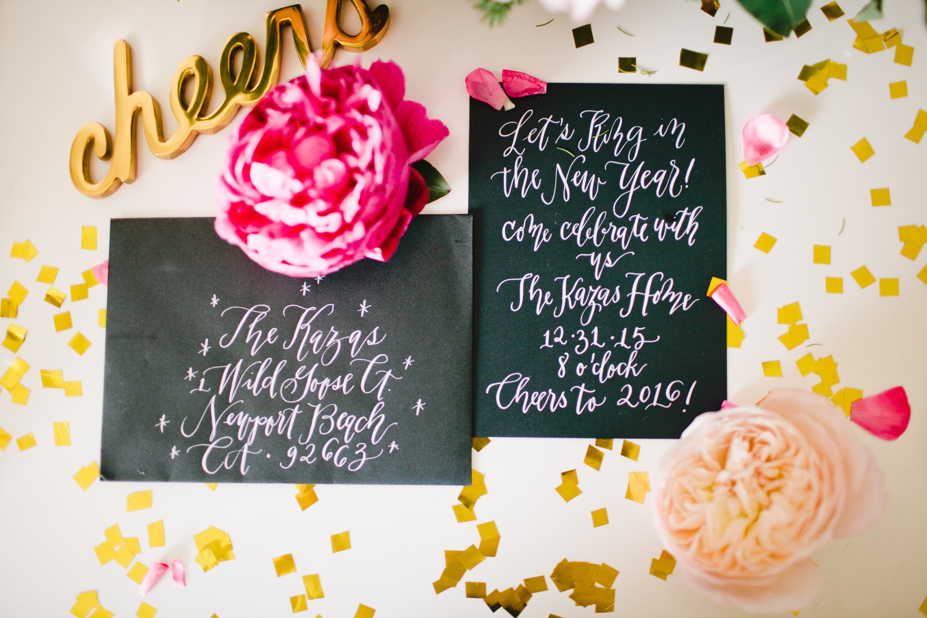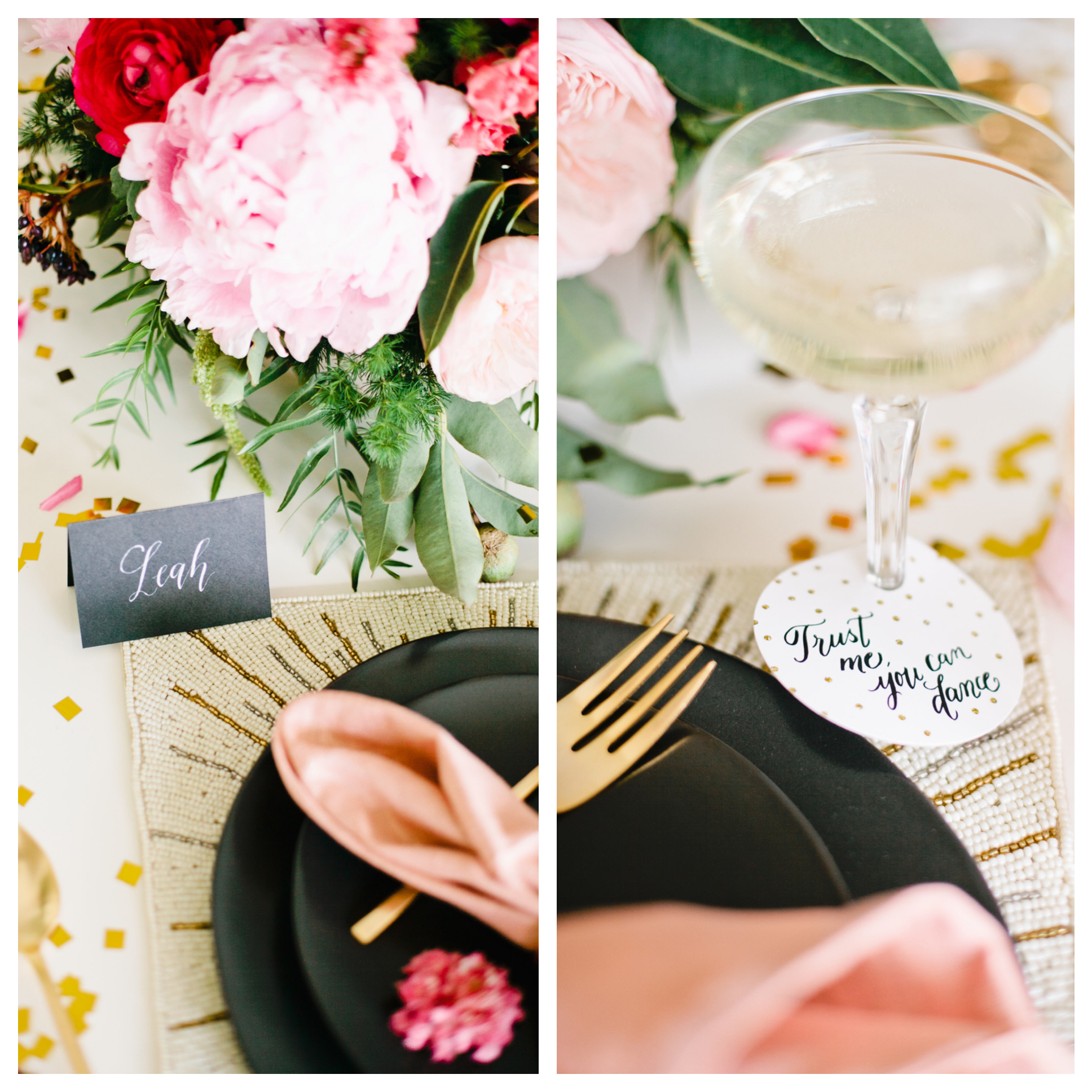 Now, you may not need an invite if you’re just doing a cozy night in for two, which we think is amazing, but if you are having a few close friends over an invite is always nice! We listed the help of the lovely Laura Hooper Calligraphy, who created this simple yet stunning invite. We love her style of calligraphy, and wait till you see what other goodies we got from her online shop!