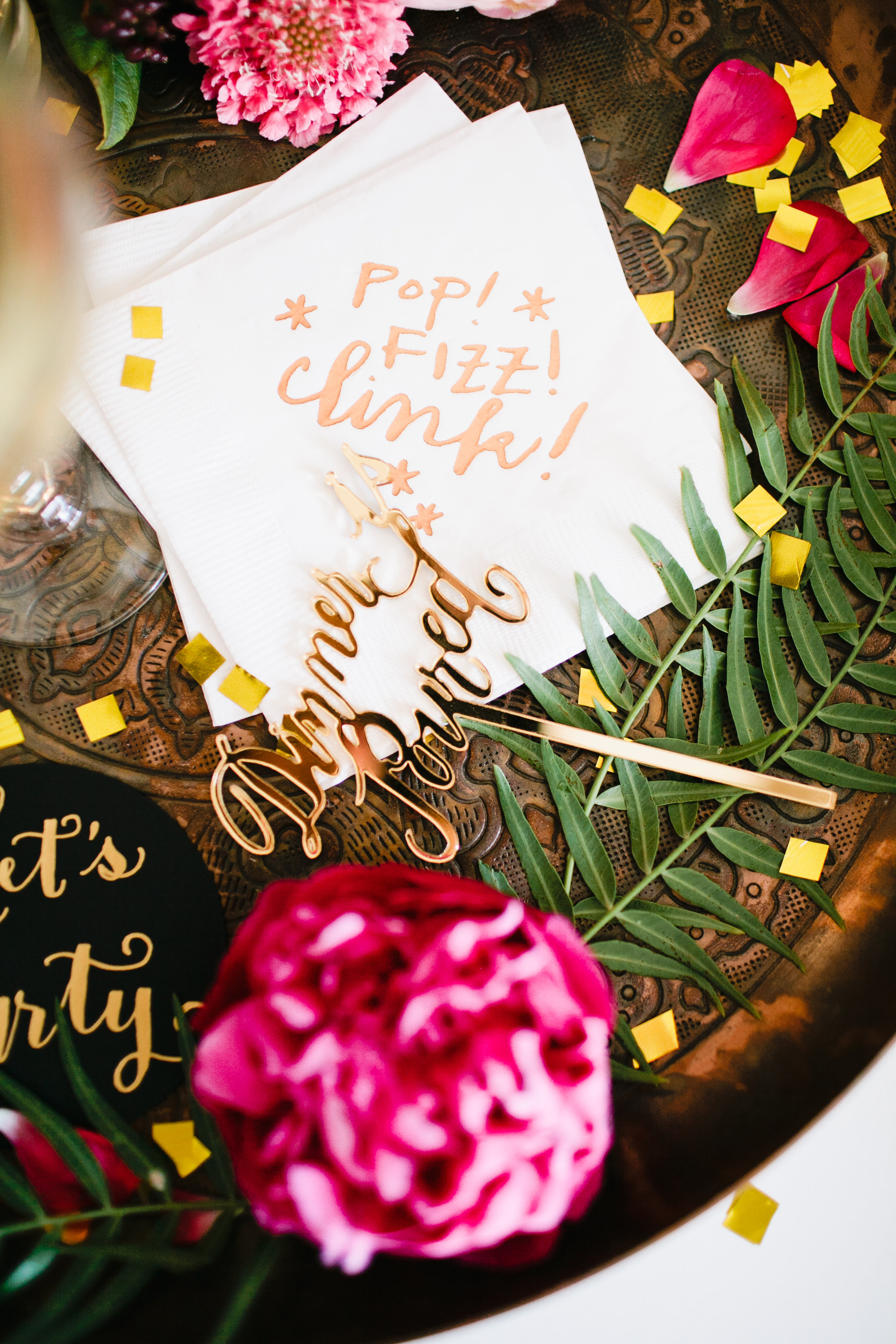 It’s all about the details for us, and these copper Pop! Fizz! Clink! napkins add the perfect touch to any gathering!