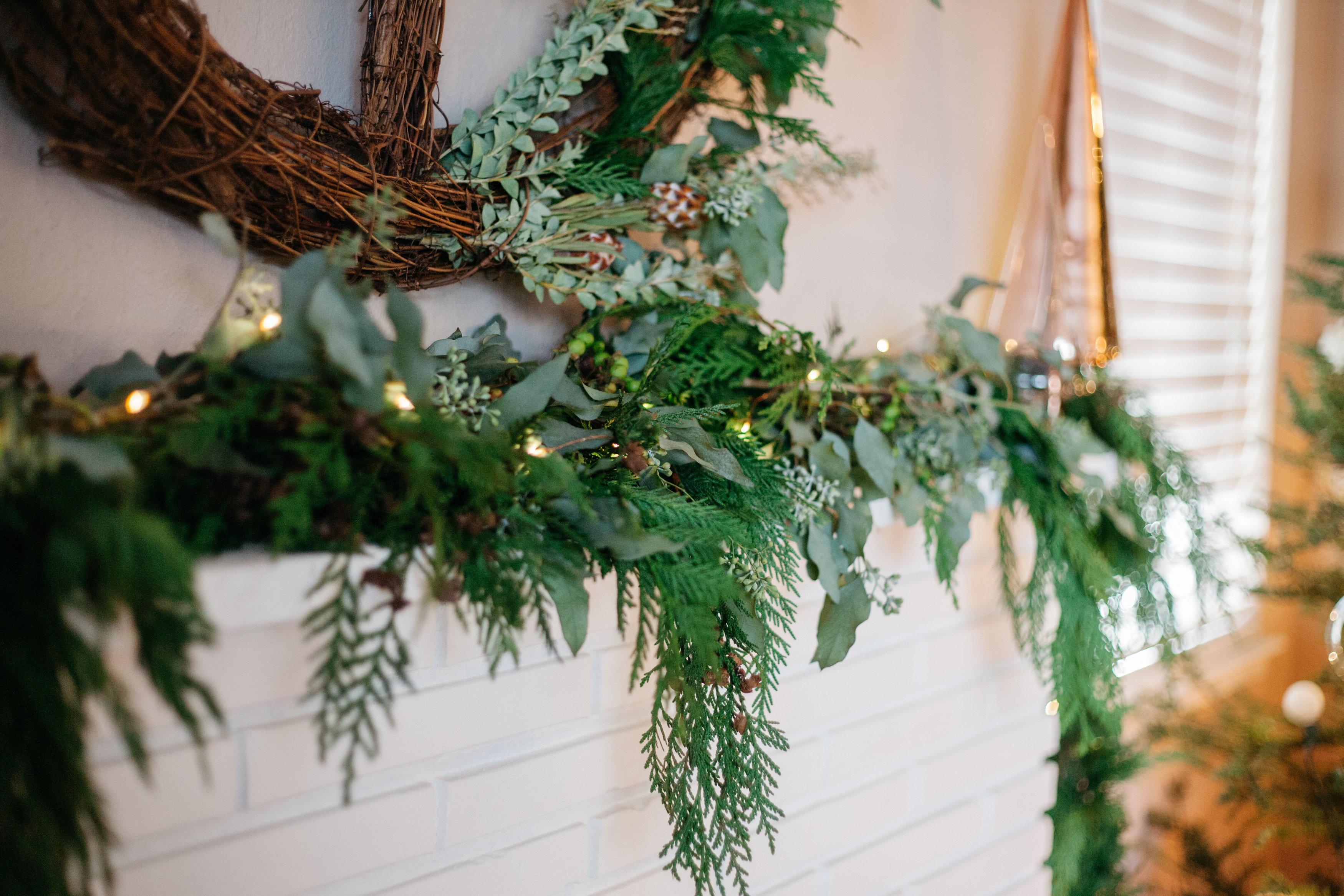 that cascaded down the mantle. I just love how some of the greenery fell in front of the mantle…..