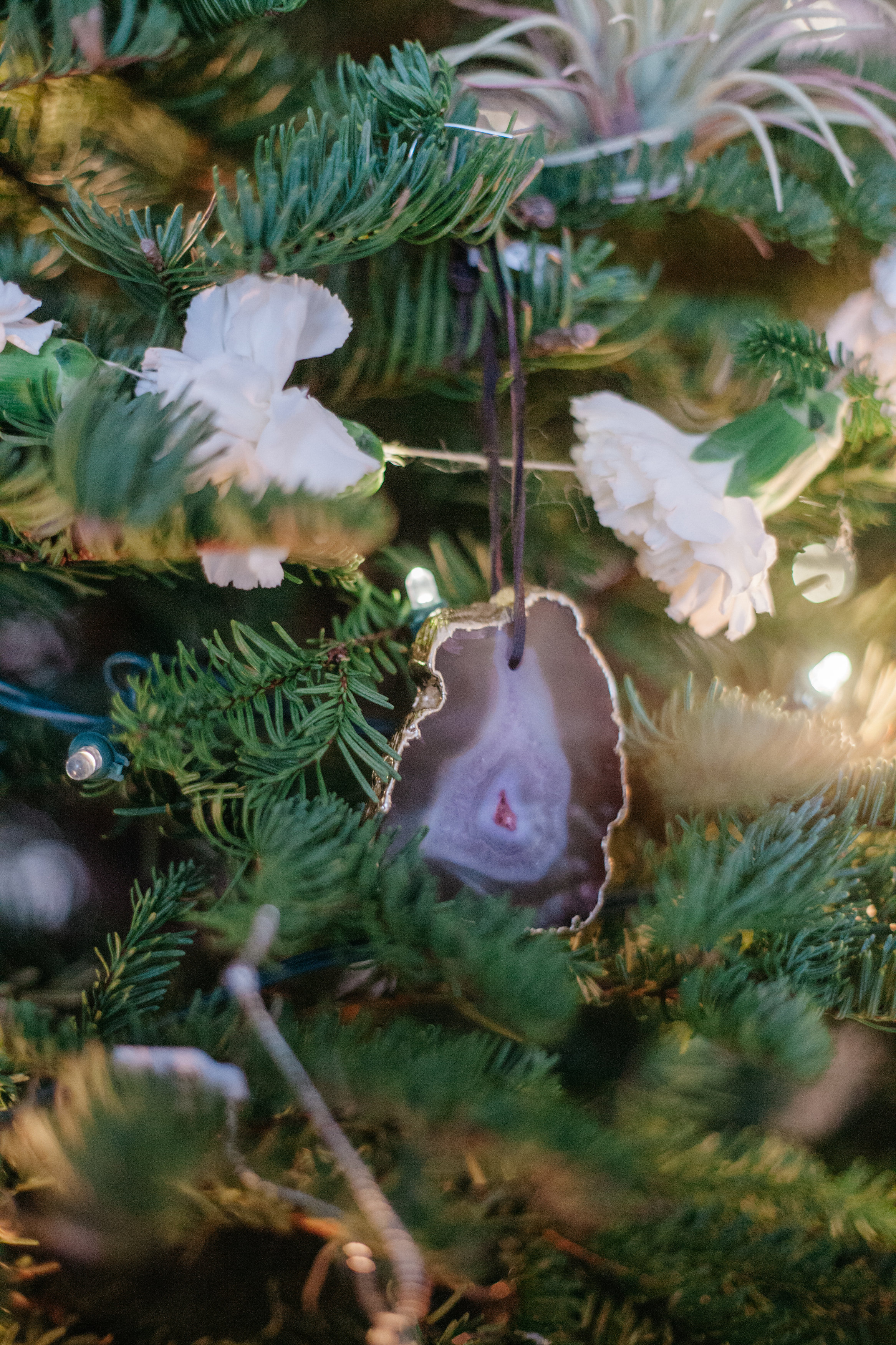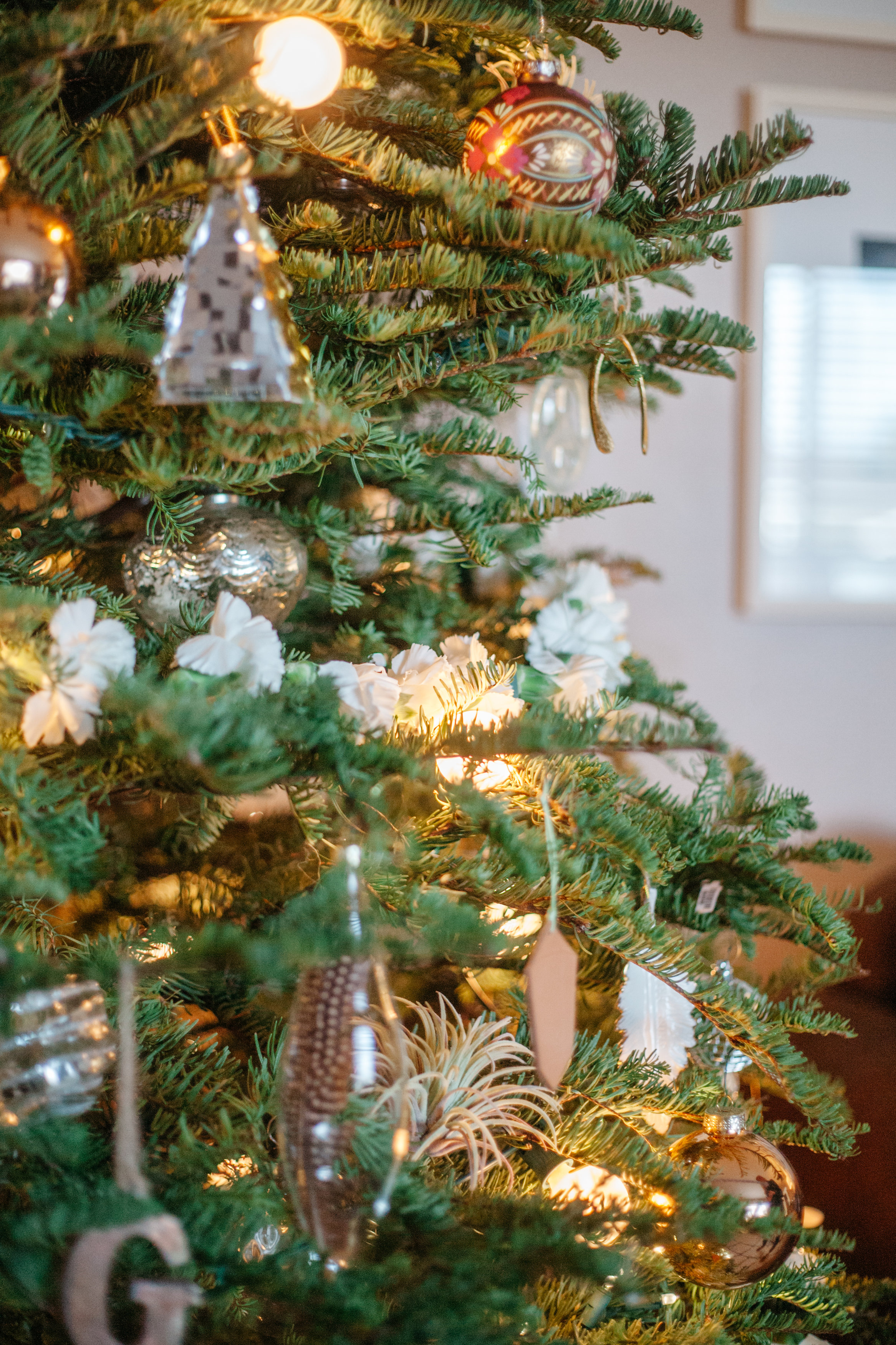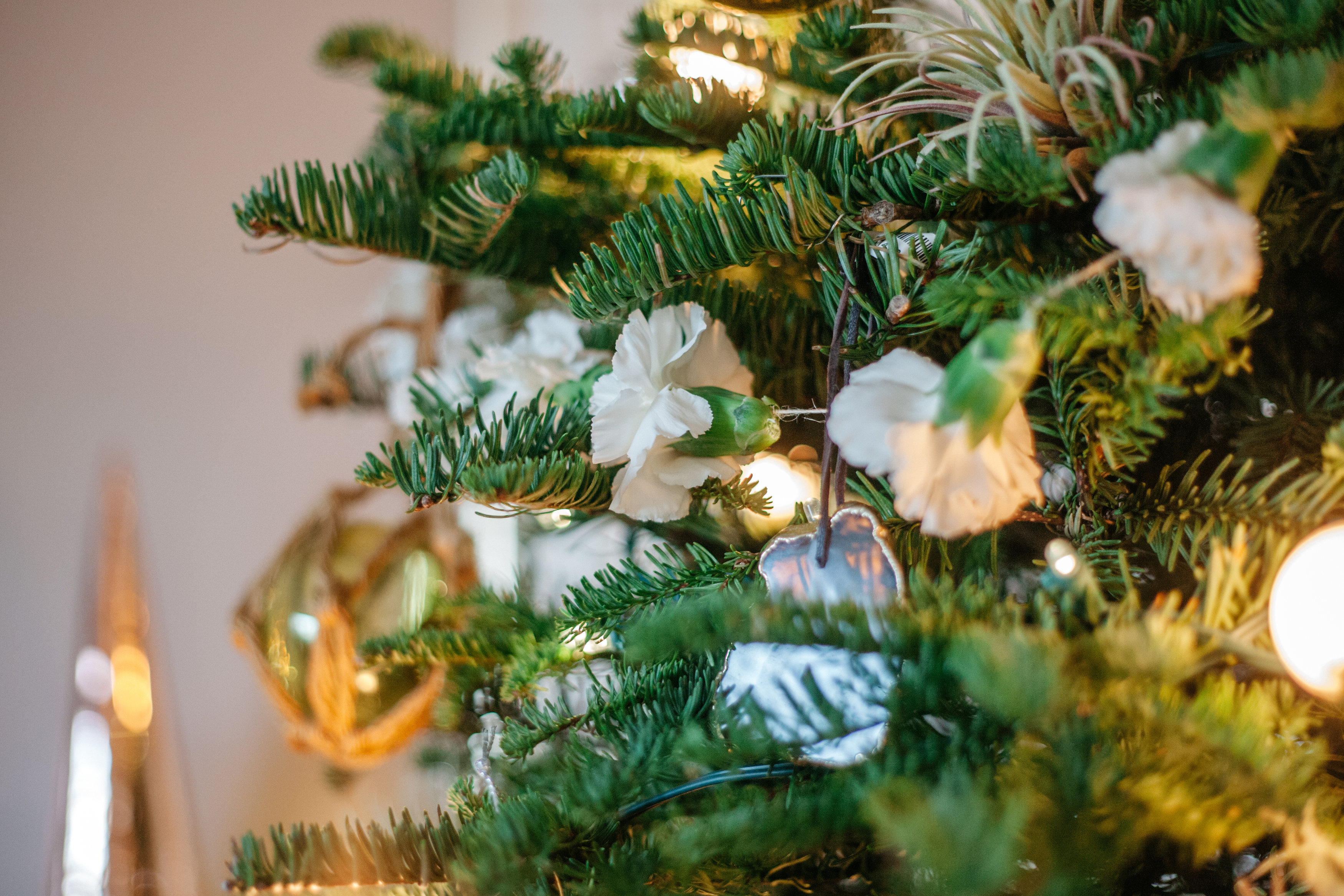 Like Mother, Like Daugher, I put fresh carnation garlands and fake airplants throughout the tree.