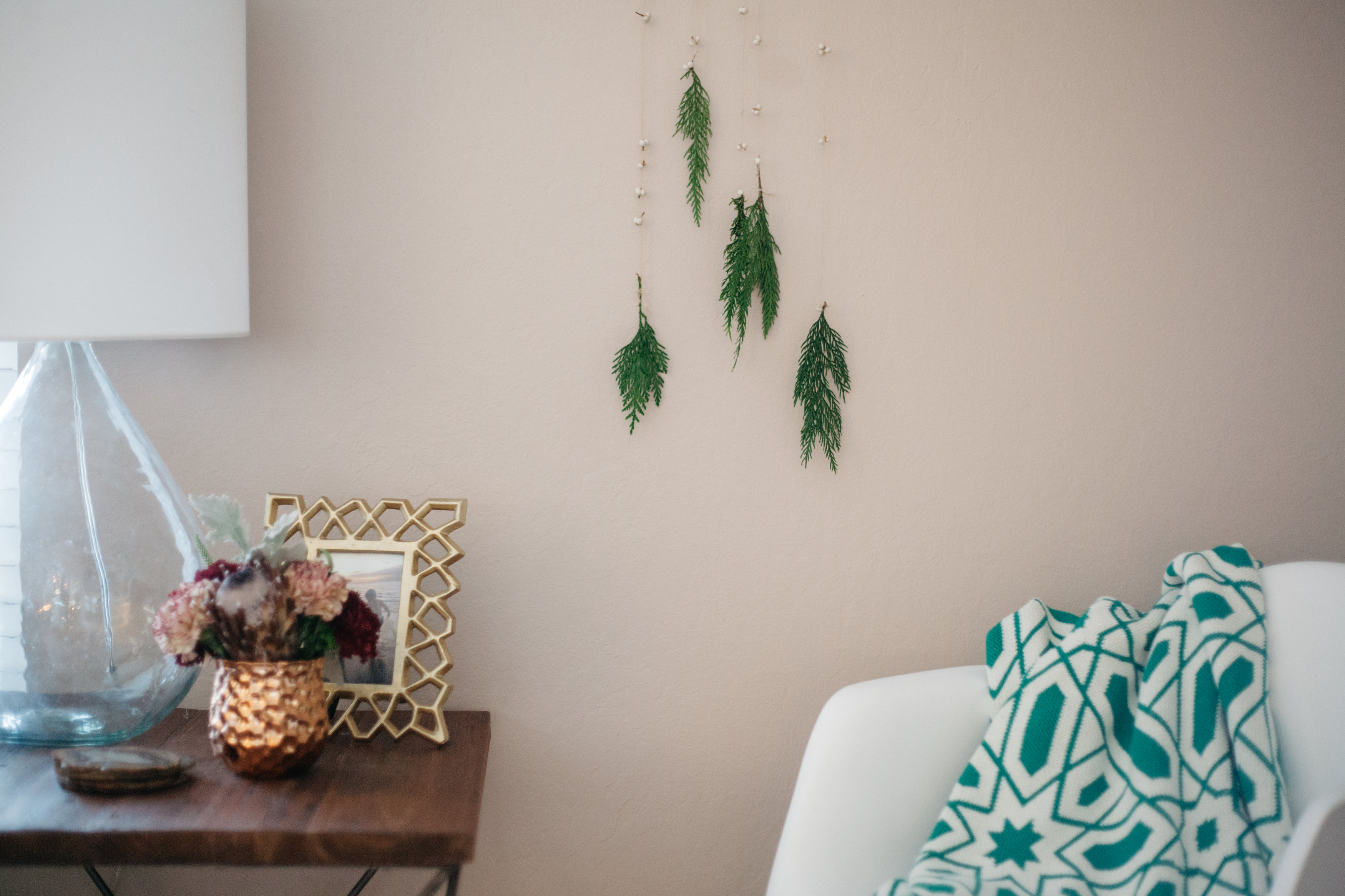 Decorating for the holidays, its all about the tree and mantle for me. Here is a look on how greenery and simple strain of white carnation flowers can fill your room with such joy and glee! (and make it smell really good too!)