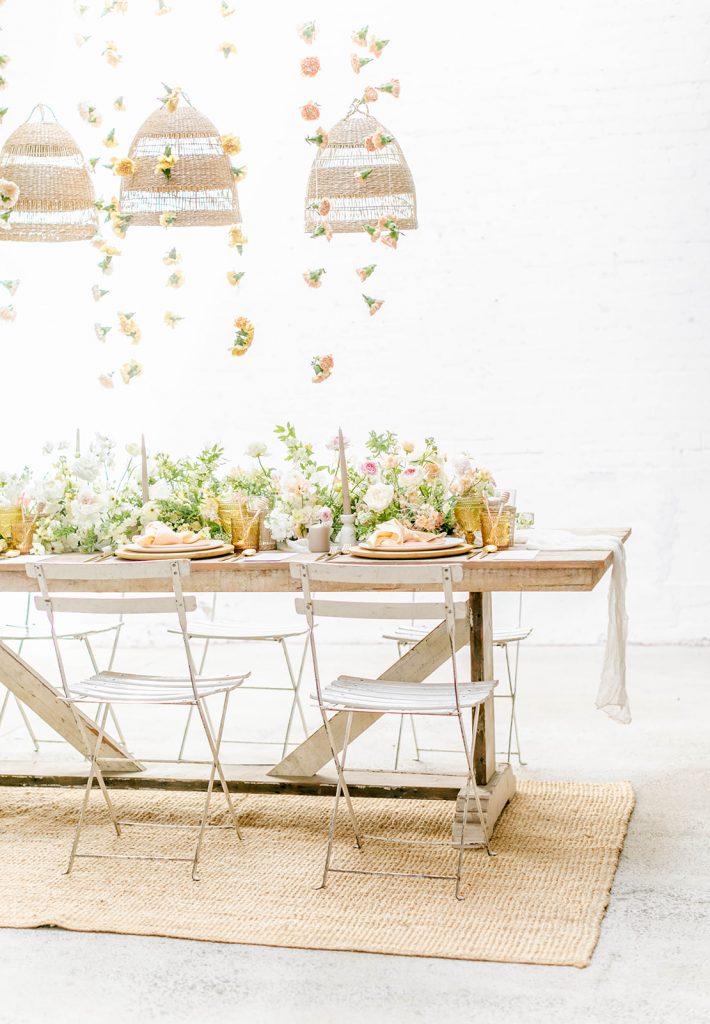 We decided to pay tribute with a honey-inspired shoot! It’s full of fun details, lots of gorgeous florals, and delicious food! All in those pretty spring tones we love so much! Keep scrolling to see it all but also check us out on Inspired By This today!