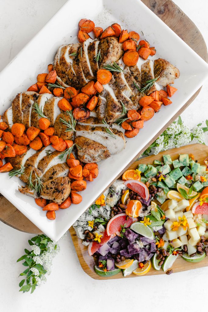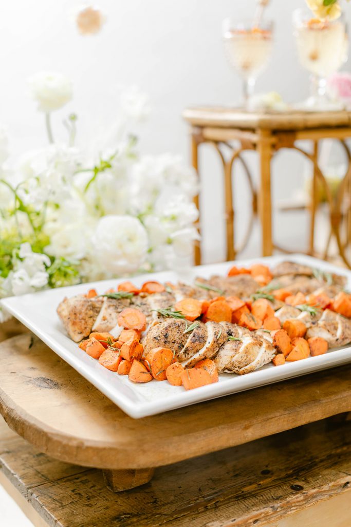 Moving on to our delicious food spread! Which included honey, of course! Colette’s Catering always brings the yum, and this time in form of food and cocktails! This included a Spring citrus, cheese, and honey board, Fried Goat Cheese Salad with Roasted Baby Beets, Blood Orange, Honeycomb, and Pistachio Vinaigrette, and last but not least Pan Seared Chicken with Honey Roasted Carrots. Scrumptious!!! For cocktails, we had a Classic Bee’s Knees with gin and The Honey Bee with tequila. Everything was amazing!!