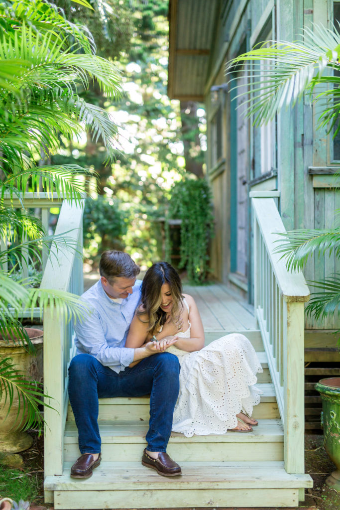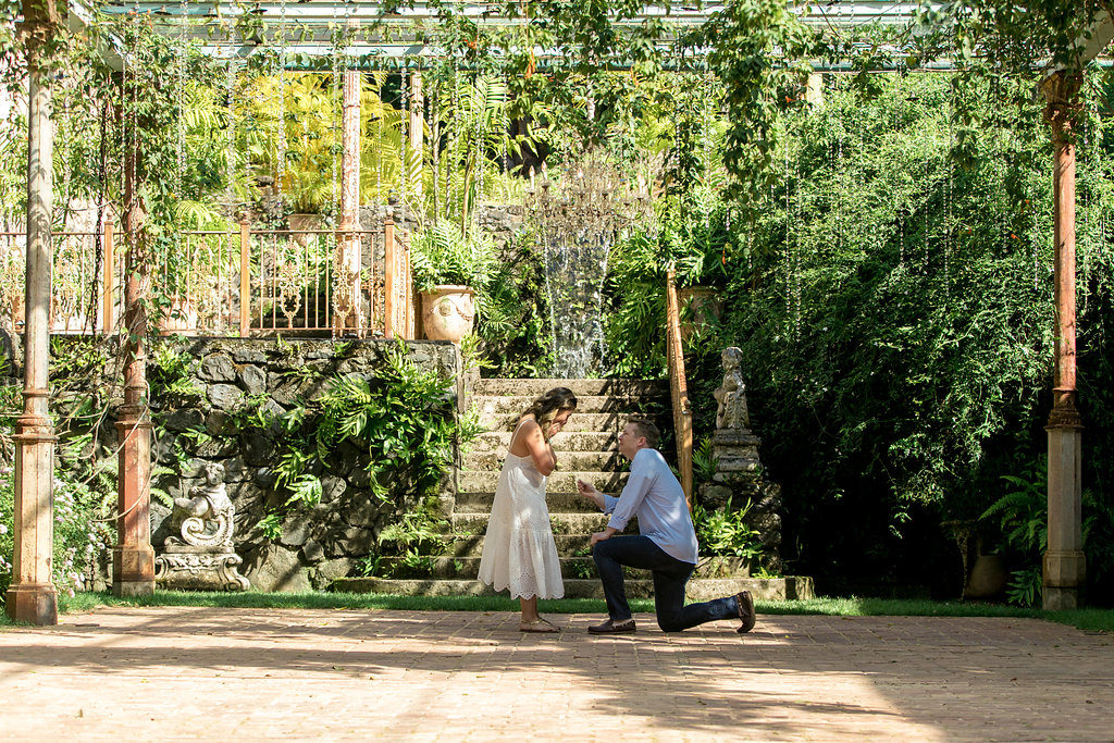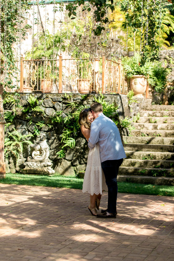 Fast forward again to 9 months later, Sean and I have headed to Maui again. Unbeknownst to me, my sweet boyfriend had a surprise plan to propose to me at the very place I have dreamt of getting married, Haiku Mill. He conjured up an elaborate lie convincing me he had been introduced to the owner of Haiku Mill and set up a private tour for us. Little did I know, he was scheming to propose. At one point during our “tour”, the gal showing us around disappeared to turn on some chandelier lights, and the next thing I know I turn around and Sean are on his knee! I couldn’t believe it! I had the surprise of my life. A few moments later I noticed from the corner of my eye a photographer that he hired to capture our special moment. He did so good! I will forever cherish these special moments!