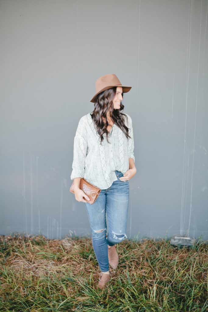 I like this look for the colder Spring days but would definitely lose the hat and boots if it was warmer. Probably throw on some denim shorts and sandals, or even some sneakers!