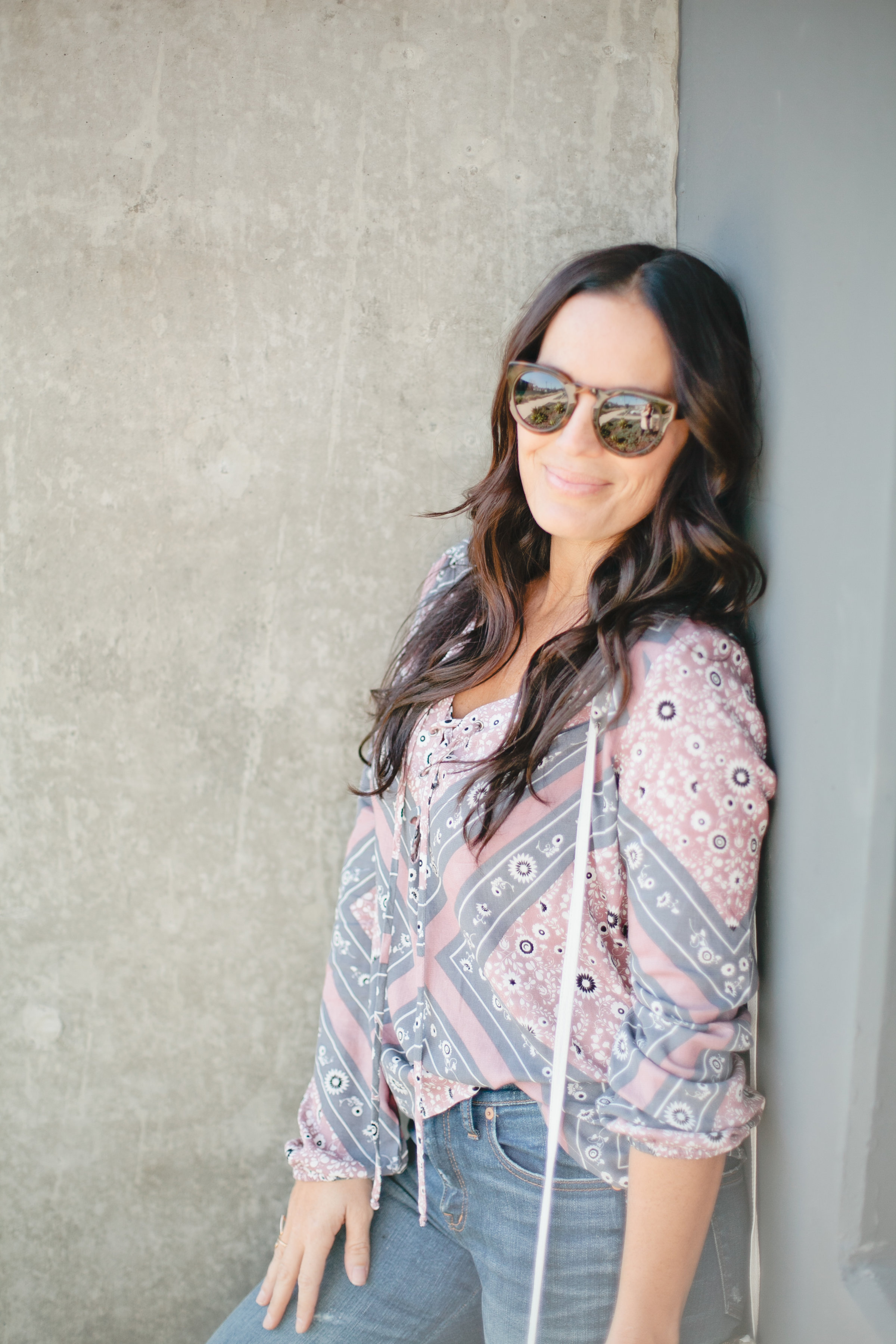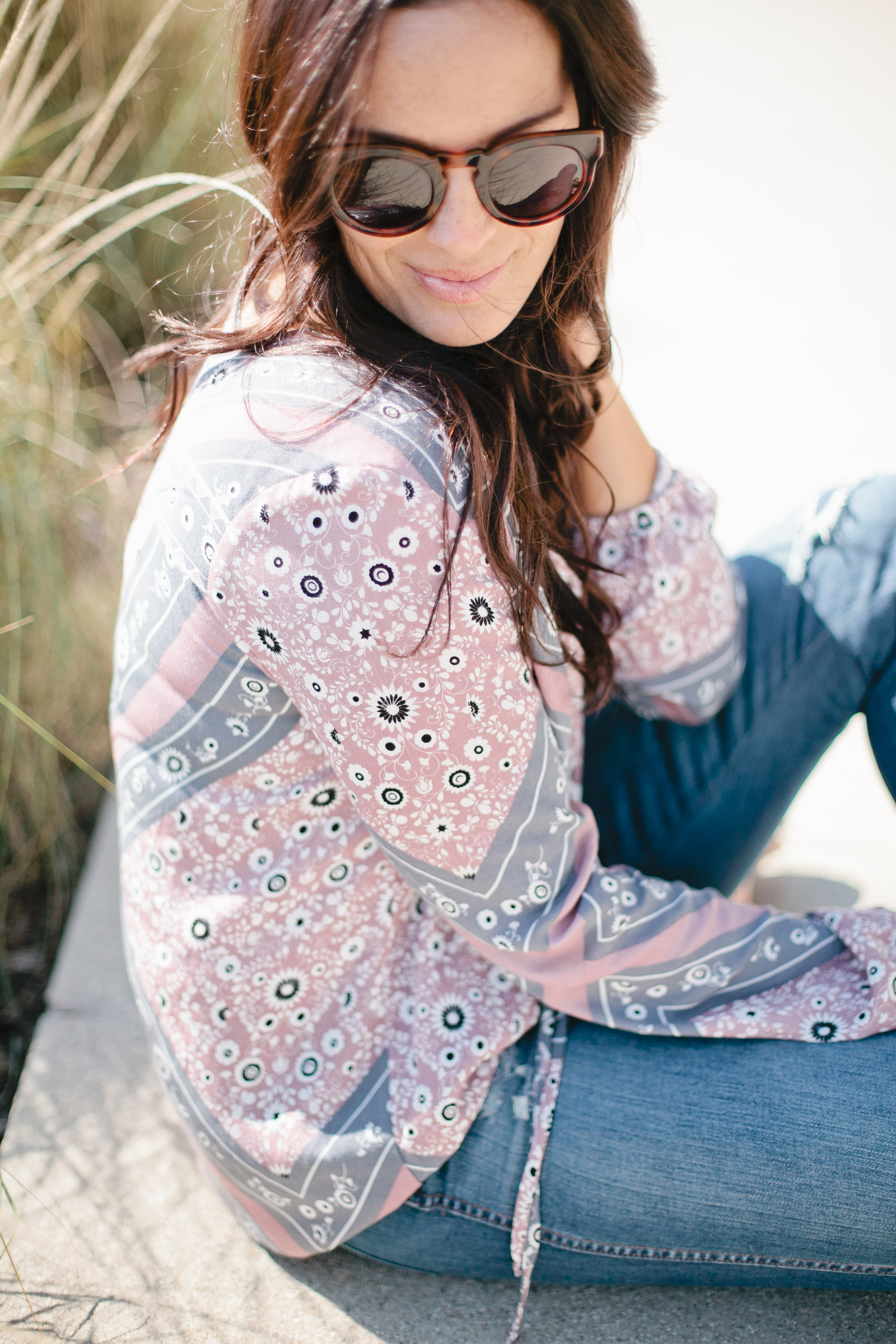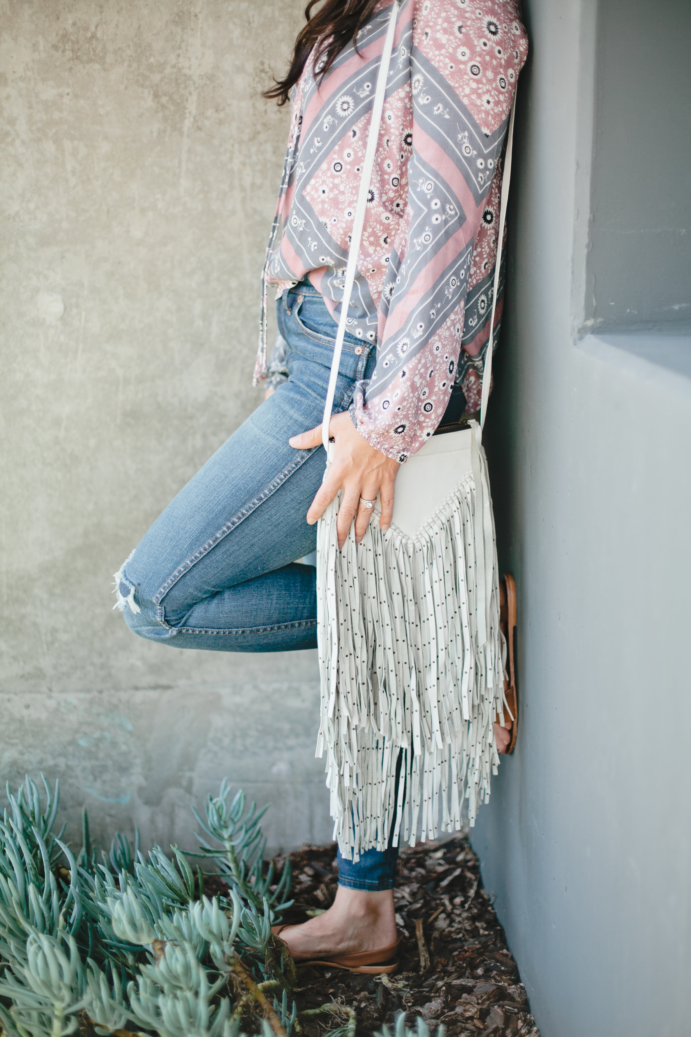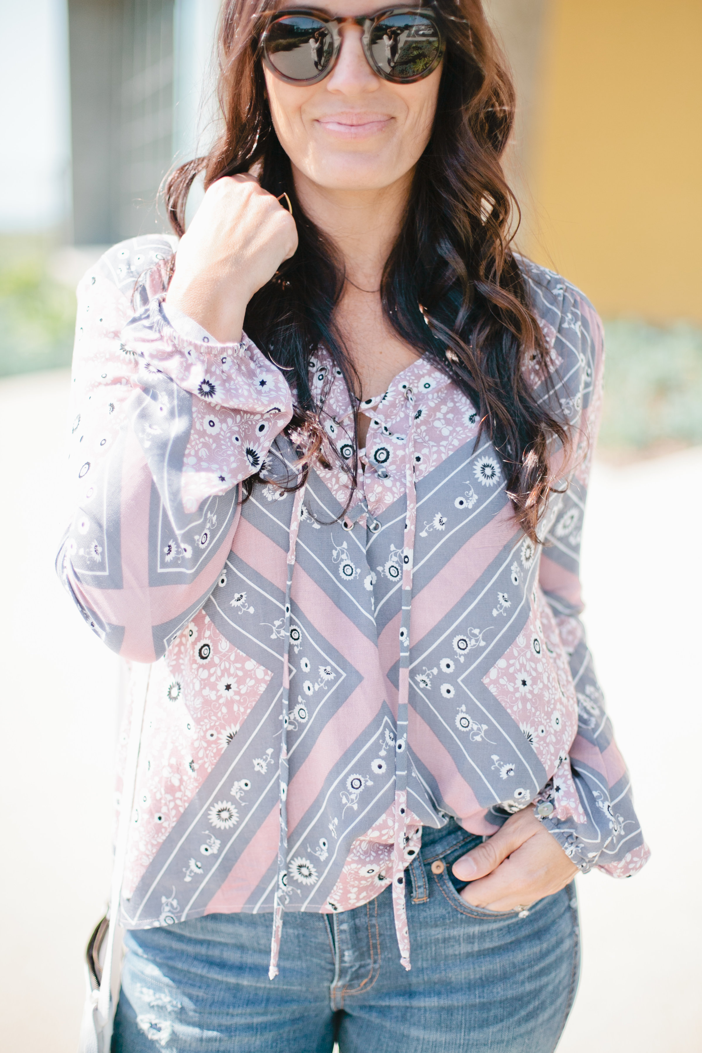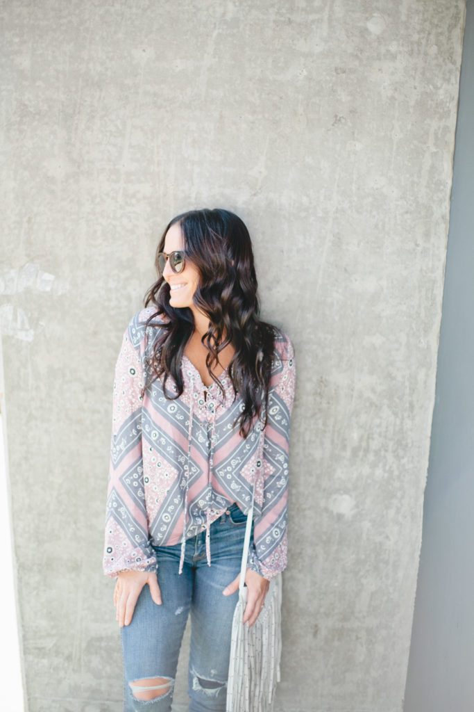 I’ve worn it so many times since and love it. It’s the perfect statement top to take me into summer! Here I wore it with my Madewell High Rise Skinnies, Cleobella fringe purse (similar here), Wyeth Sunglasses and Free People Sandals. But I envision it with some denim shorts or overalls when it gets warmer!