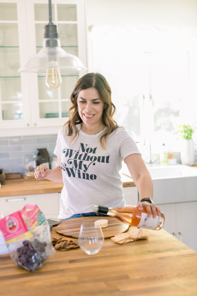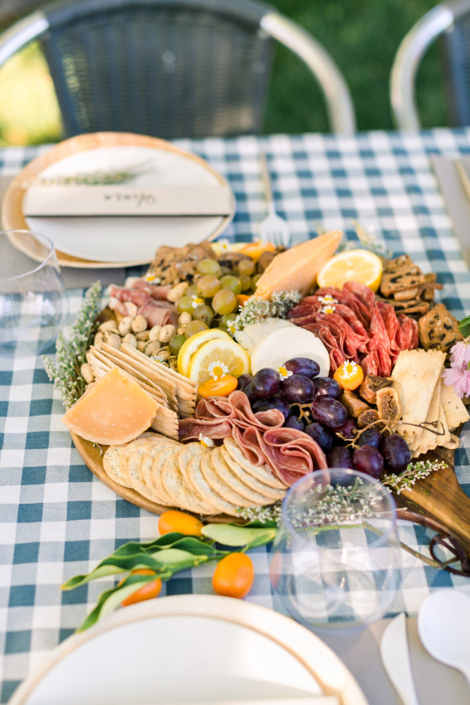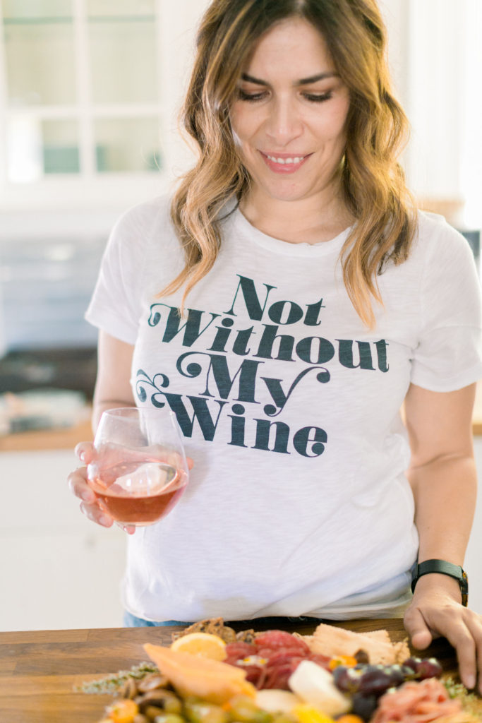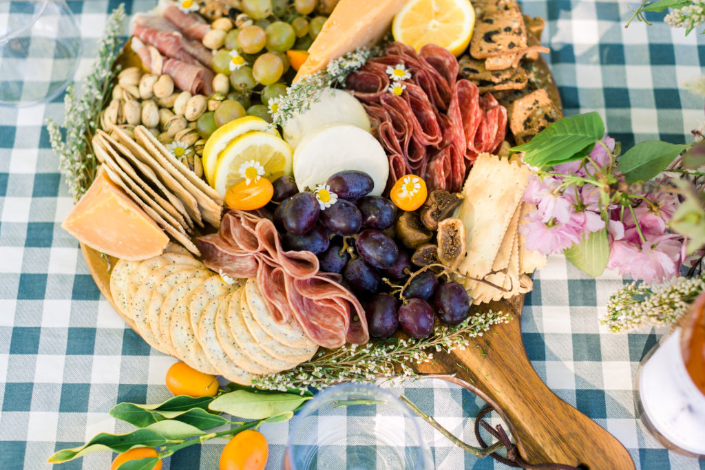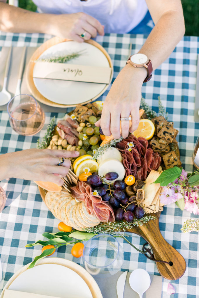 Meanwhile in the kitchen, Leah was just drinking away! Haha, just kidding – well kind of ;) Really Leah was getting some yummy bites ready!! Our friend Dionna at Feed & Feast gave us all the goods and tips for the perfect charcuterie board! So Leah went to town and the result was quite impressive!