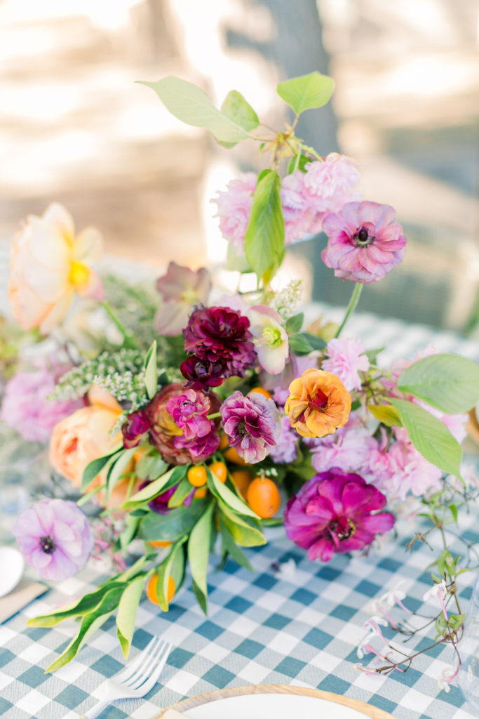 Our friend Natasha Kolenko created the beautiful floral arrangement, such a fun mix of spring blooms and colors!