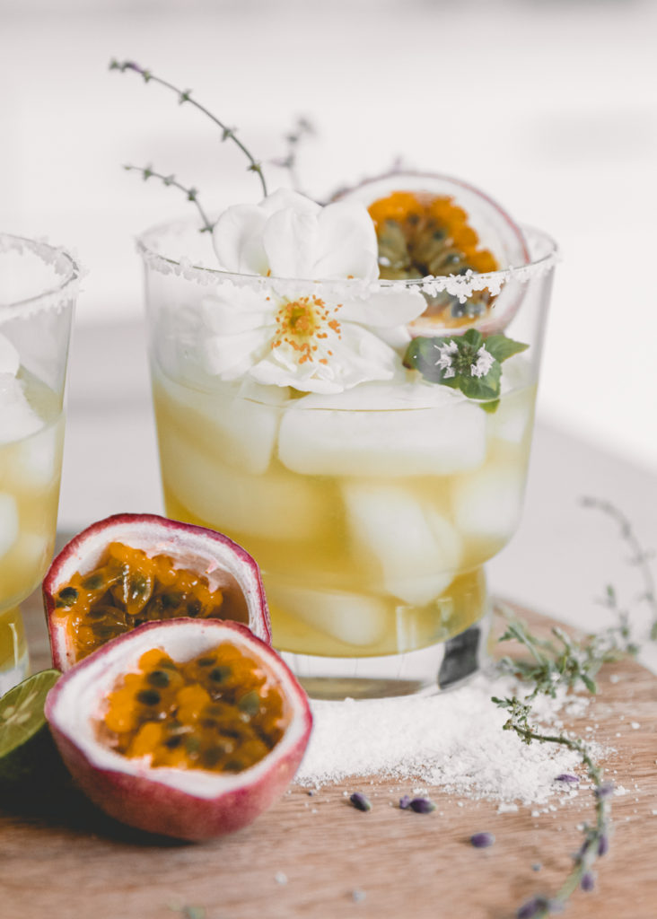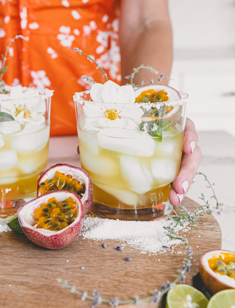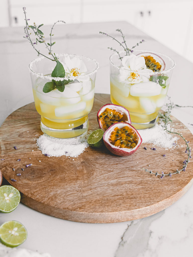 It’s Saturday! What are your plans this weekend?!? Maybe a little Halloween decorating? Perhaps a little couch session? We are laying low this weekend for sure! BUT! There is always a good cocktail in mind to enjoy, and this weekend it’s all about the passionfruit margarita! I have mentioned before about our passionfruit vine we have in our backyard. I have made a ton of cocktails with them, and they are my ultimate fav! And one of the cocktails that I enjoy is the passionfruit margarita. Usually, I will add one passionfruit to each cocktail, but I adjusted the recipe today for everyone since they don’t have a vine outside. Passionfruit is one of my favorite fruits, and I think you all will love this one!