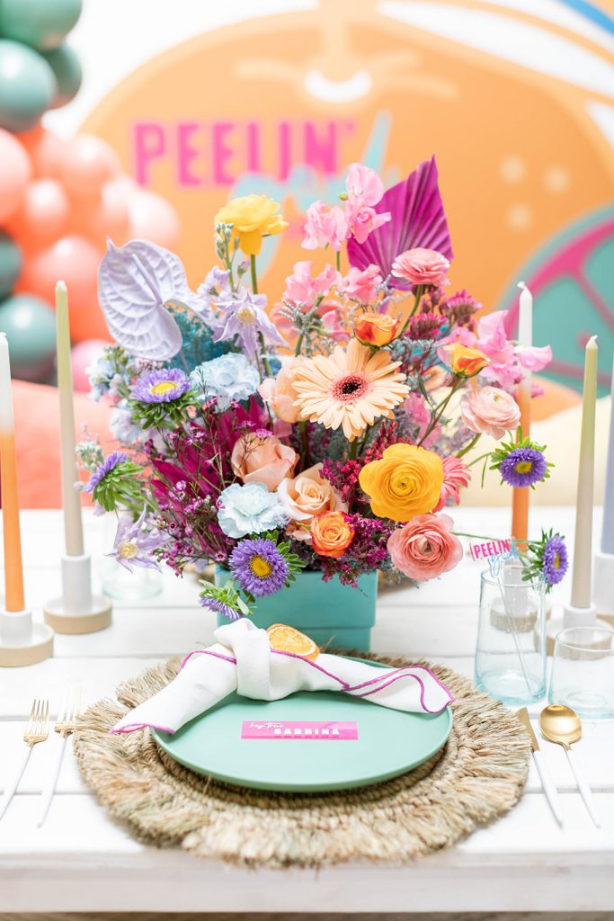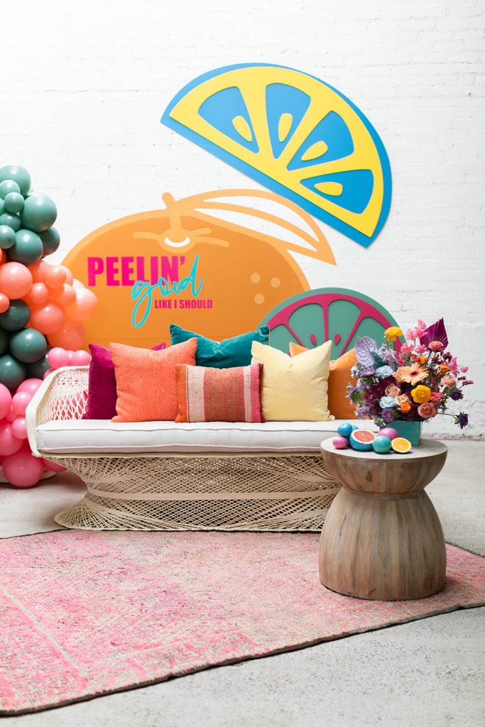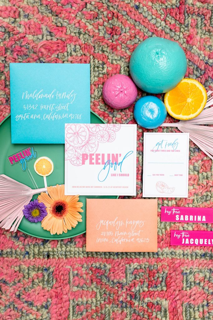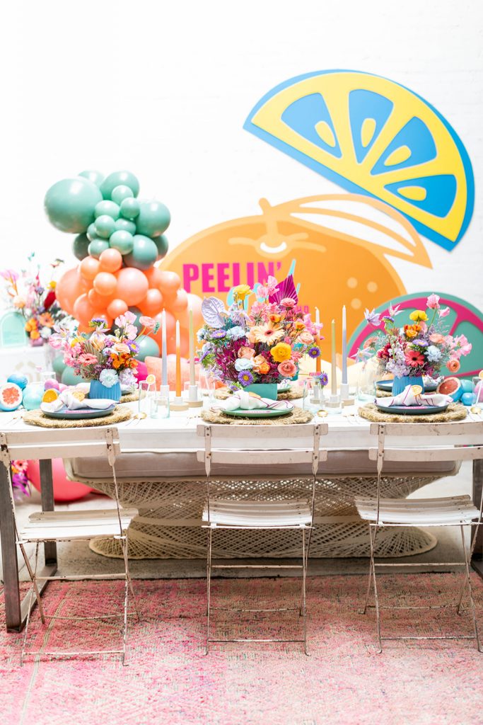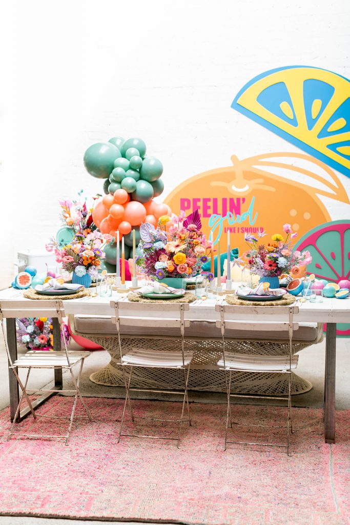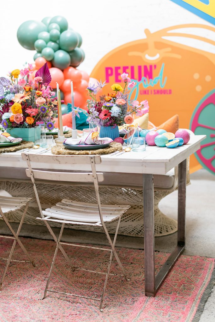 With Summer quickly approaching we thought we’d add some zest into your life!! I was lucky enough to collaborate on this shoot with my friend Sabrina of Golden Arrow Events & Design. She had this cute concept and idea based on the Surfaces song Sunday Best. But instead of the lyrics “feelin’ good, like I should” she changed it to “peelin’ good” – and that’s when she had me, with that pun! We took that sweet pun and ran with it creating this fun citrus-inspired shoot full of color and LOTS of pretty! It was featured on Oh It’s Perfect last week and I’m excited to finally share it with you today!