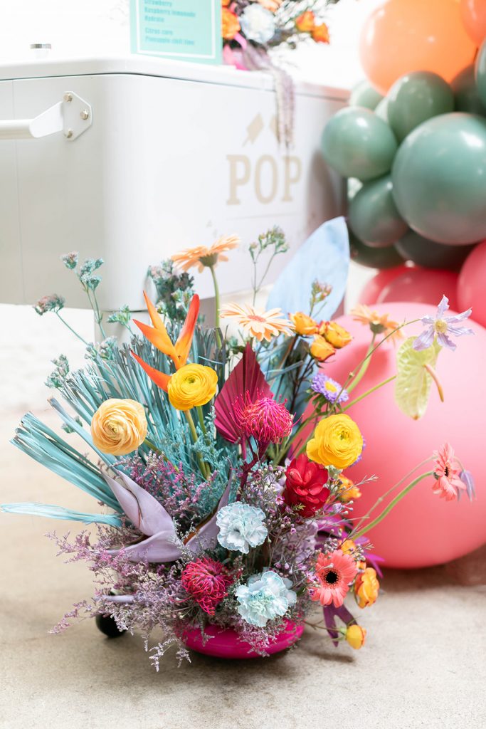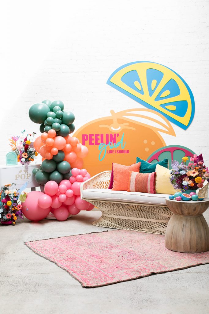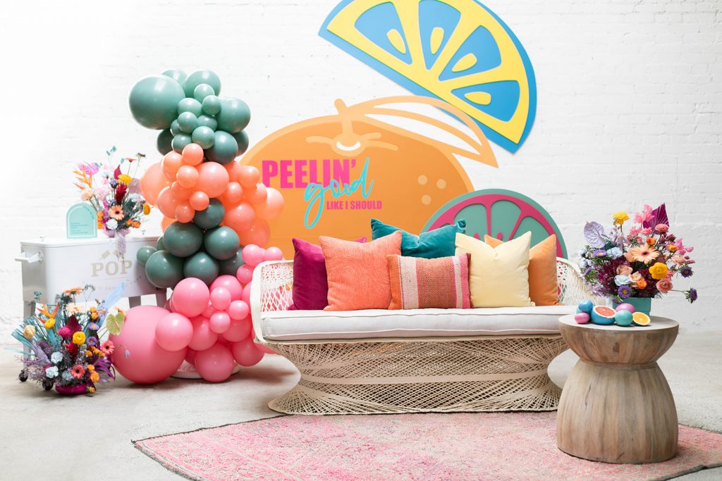 This little lounge setup is the perfect spot to enjoy a popsicle! Love the colorful pillows from Sweet Salvage Rentals that match perfectly with our scheme!