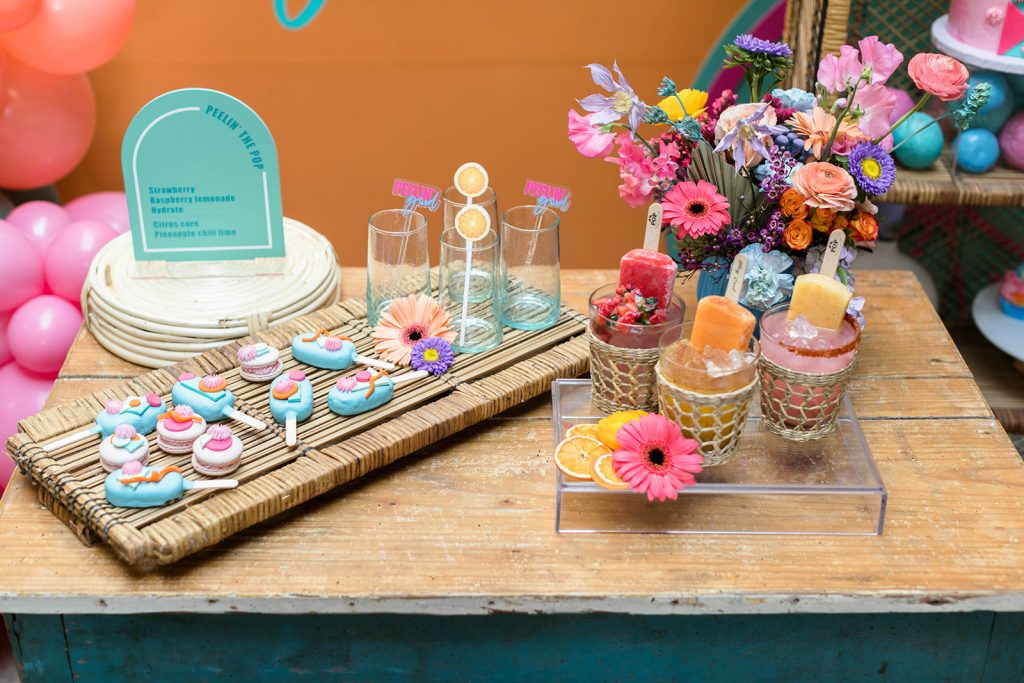 On to dessert and cocktails!! Because is there anything better?! Sugar Crush Sweets made incredible desserts that were playful and modern and Bottles and Blooms cocktails packed a citrus punch! We topped off their cocktails with Pacific Organic Pops – the perfect summer treat!!