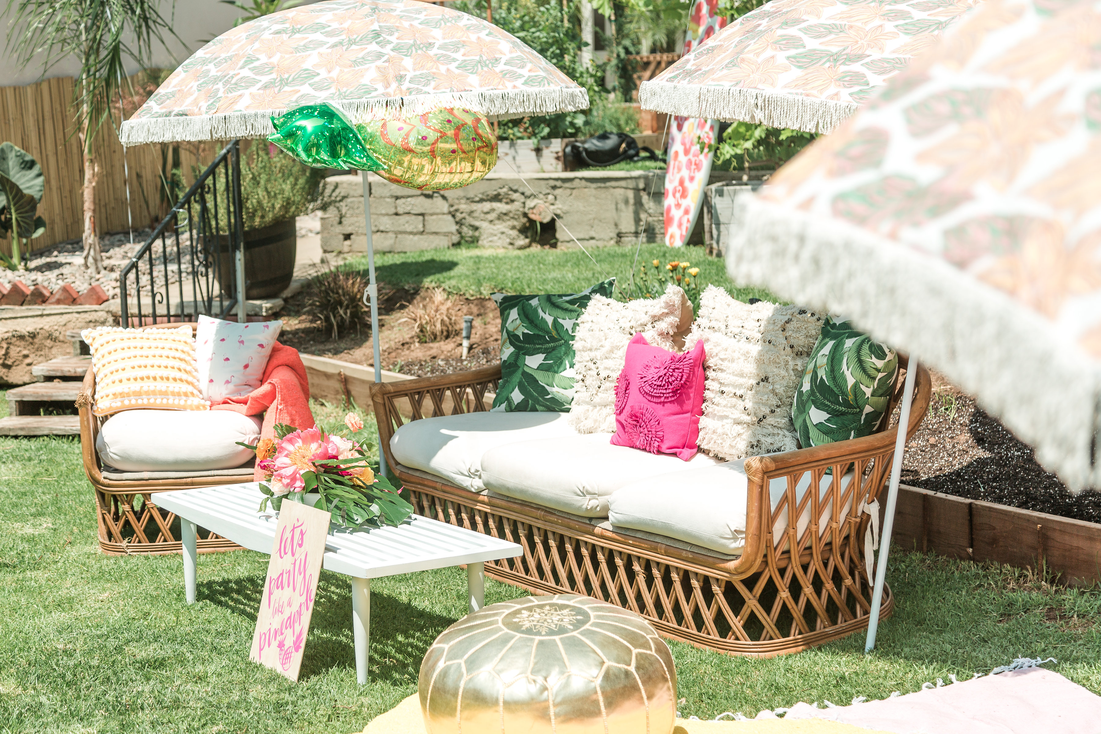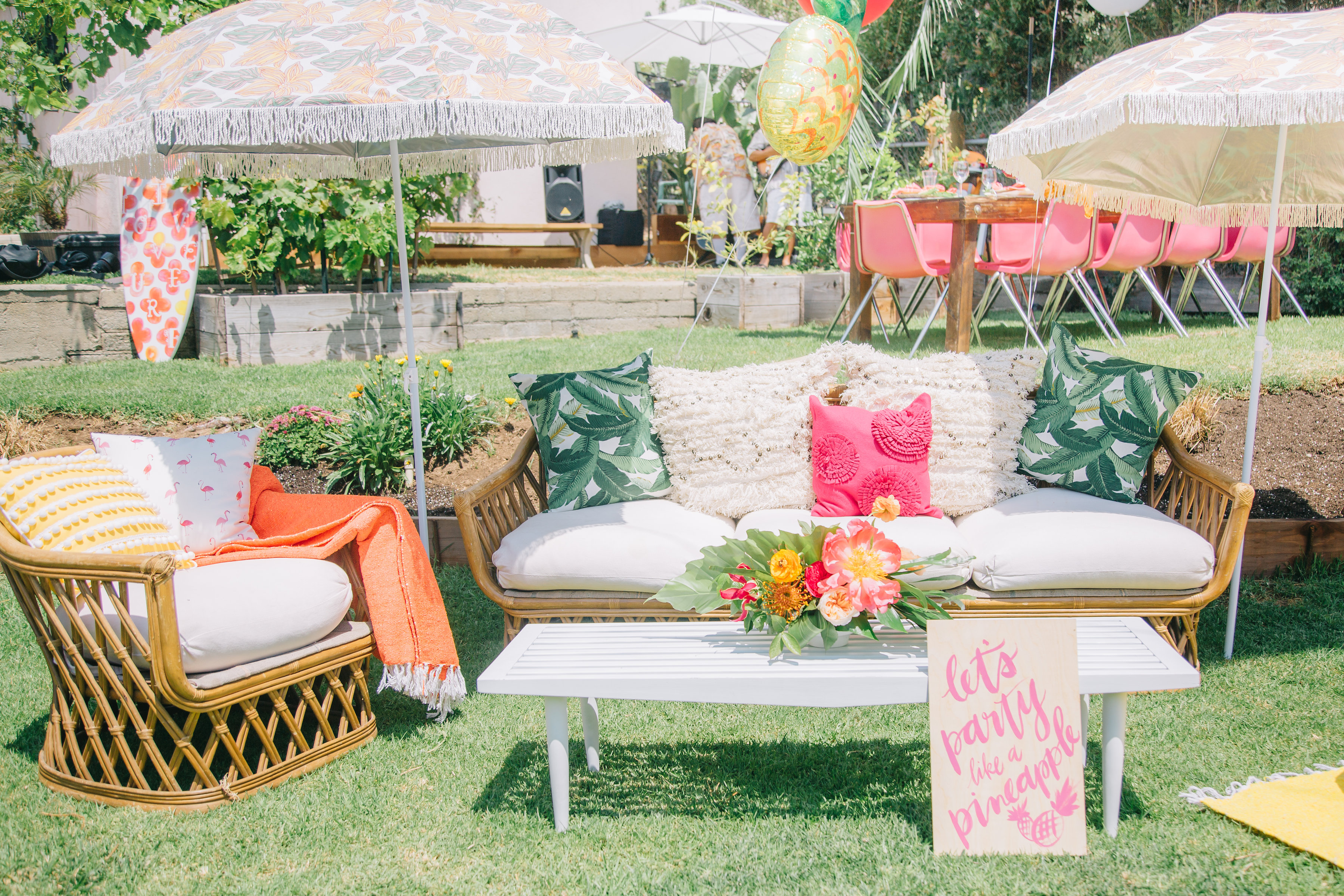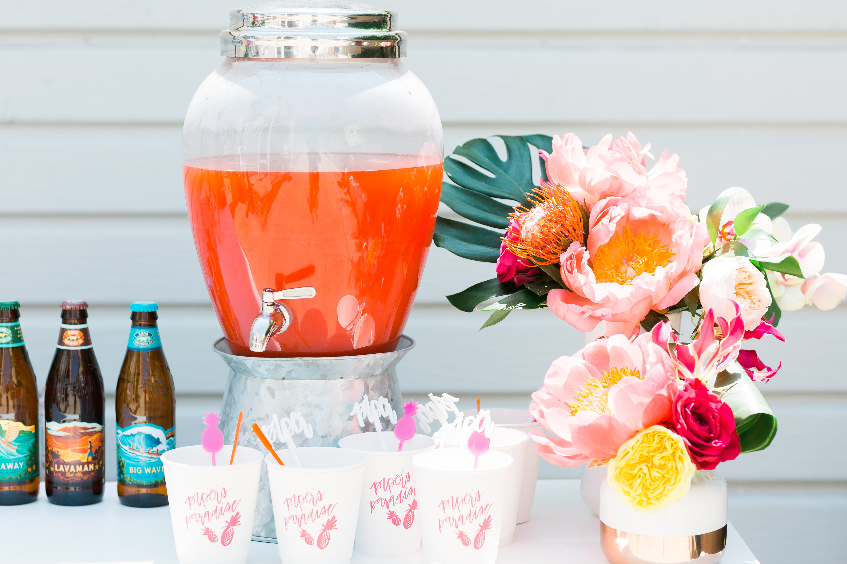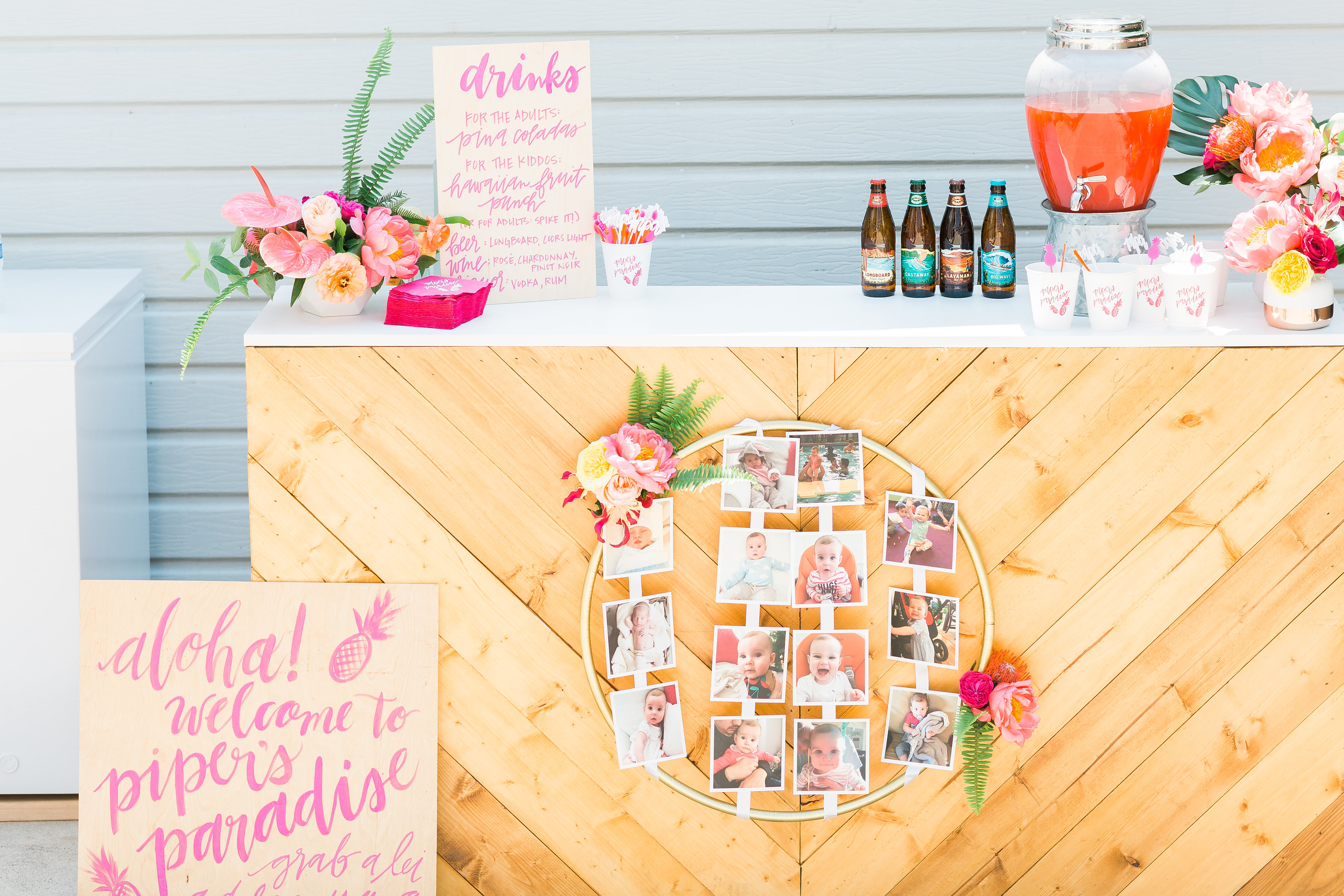 To enter the party guests walked through an amazing installation on the family’s archway to their backyard done by our talented pal MV Florals… We love how the guests felt like they were entering a tropical paradise, Piper’s Paradise to be exact….